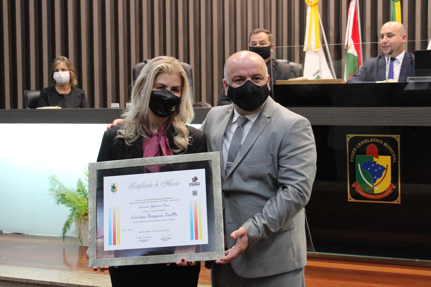 O plenário da Câmara de Vereadores de Araranguá foi palco, na noite desta segunda-feira (12/7), de Moção de Reconhecimento destina à reitora da Unesc, Luciane Bisognin Ceretta. De autoria do vereador Luciano Pires, a homenagem foi aprovada por unanimidade na Casa Legislativa e, na sequência, entregue em forma de placa à Luciane.