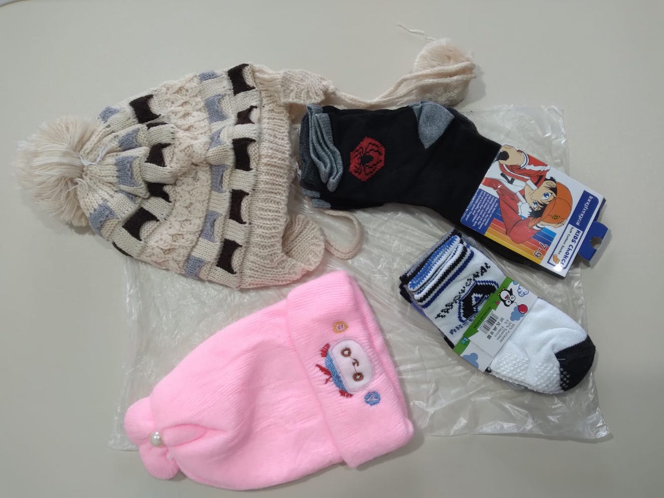 O kit de inverno destinado aos idosos e pessoas com deficiência contém: 1 manta, 1 touca, 1 cachecol, 1 par de luvas e 2 pares de meias. O kit inverno destinado às crianças contém: 1 touca, 3 pares de meias. E para as famílias em vulnerabilidade está sendo entregue 1 manta.