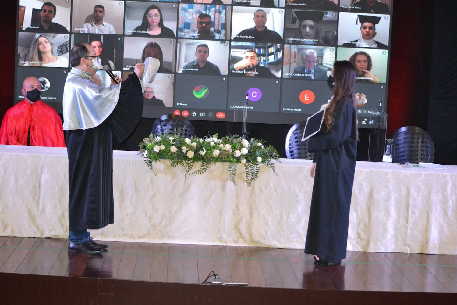 Assim como ela, os colegas graduados da noite levam para casa a conquista que, para muitos, significa uma mudança de vida. A modalidade de Ensino a Distância em um formato inovador e ainda mais completo, lançada em 2019, de acordo com a reitora da Unesc, Luciane Bisognin Ceretta, coroam o portfólio da Universidade e sua missão enquanto comunitária de levar o conhecimento até as pessoas. “Colocamos em prática um projeto audacioso que tinha como objetivo principal ampliar o acesso ao Ensino, garantindo a qualidade da formação com o perfil de Universidade. Hoje vemos que valeu a pena todo o planejamento e a lapidação dessa ideia, pois ela nos dá muitos frutos maduros”, pontua.