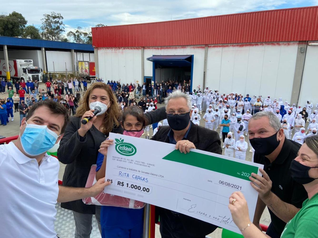 Em parceria com a Fundação Municipal do Meio Ambiente (Fundai), a empresa Eskimó, instalada no bairro Poço Três em Içara, desenvolveu uma campanha de conscientização entre seus colaboradores para escolher a melhor frase com o tema reciclagem. Participaram do concurso interno quase 700 funcionários. No final, Rita Chagas teve a frase “Reciclar é um ato de amor e a natureza agradece” escolhida e levou uma bolsa térmica, um guarda sol da empresa além de R$ 1 mil reais em prêmios para casa.