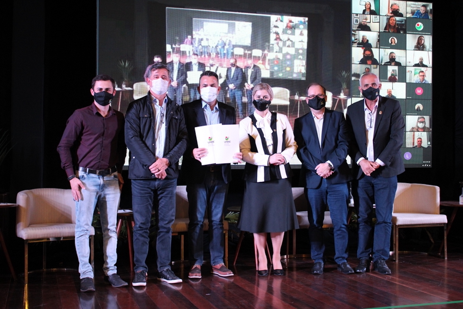 O palco de honra do evento, um dos primeiros a serem realizados com a presencialidade de convidados no auditório, foi composto pela reitora da Unesc, Luciane Bisognin Ceretta; pelo vice-reitor, Daniel Preve; pelo vereador Paulo Ferrarezi, propositor da Moção; pelo secretário de Estado da Educação, Luiz Fernando Vampiro; pelo vice-prefeito, Ricardo Fabris; pelo presidente do Diretório Central dos Estudantes (DCE), Douglas Leffa Pirolla e pelo presidente da Câmara, Arleu da Silveira.