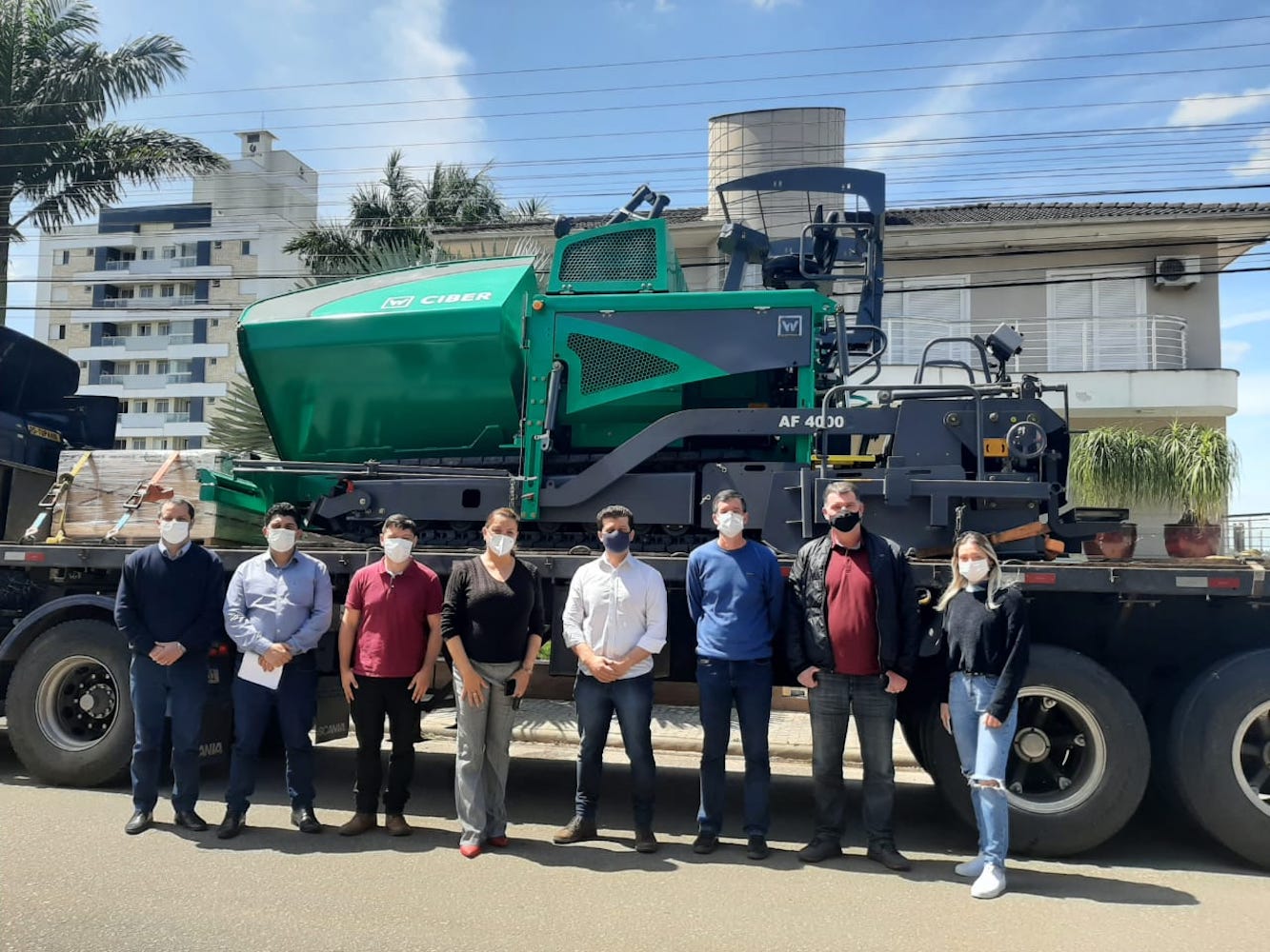 O município de Içara recebeu na manhã desta quinta-feira, dia 23, a primeira máquina que fará parte da montagem da usina de asfalto do município. A vibroacabadora trabalha com a aplicação do pavimento, assentamento e revestimento final. O equipamento foi entregue pela empresa que ganhou a licitação no valor de R$ 990 mil reais.