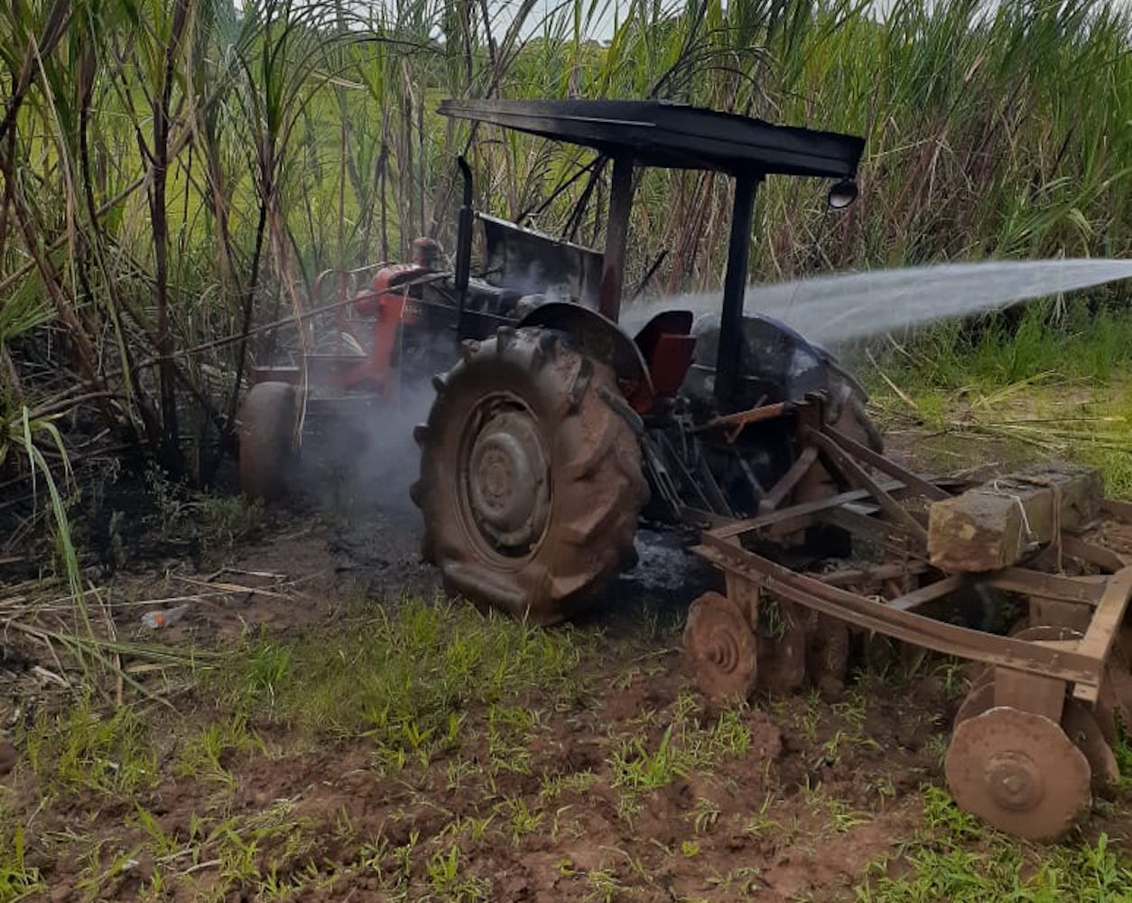 De acordo com as informações do Corpo de Bombeiros Militar, as chamas atingiram um trator utilizado no plantio de mandioca.