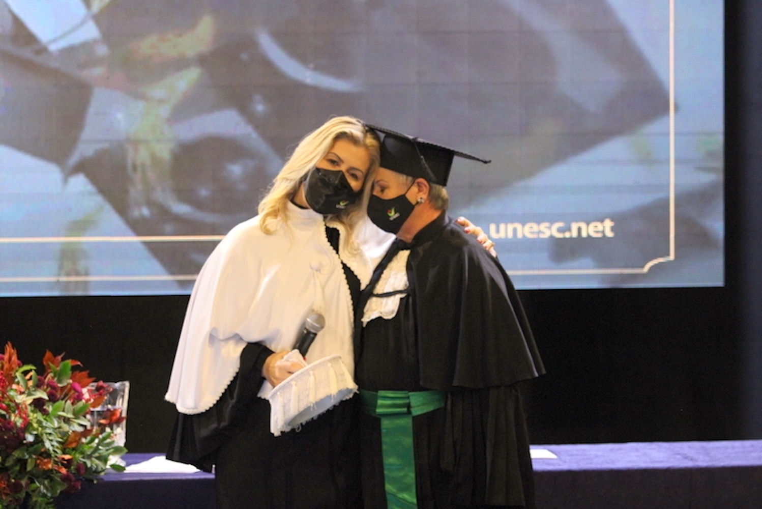 Com emoção do início ao fim, a Colação de Grau Especial foi transmitida ao vivo pelo canal da Unesc TV no YouTube e recebeu convidados em número restrito no ambiente do Auditório, seguindo as normas estabelecidas pela Sala de Situação Covid-19 Unesc.