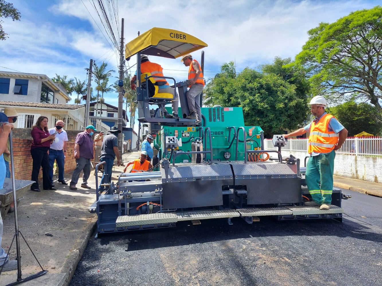 O município inaugurou nesta quinta-feira, dia 27, o uso da máquina vibroacabadora adquirida recentemente para complementar os equipamentos da usina de asfalto que será instalada em breve. A máquina foi utilizada na colocação de asfalto em um trecho da rua Anita Garibaldi, no bairro Primeiro de Maio. O objetivo foi testar o equipamento e ao mesmo treinar a equipe do Pátio de Máquinas quanto ao seu uso.