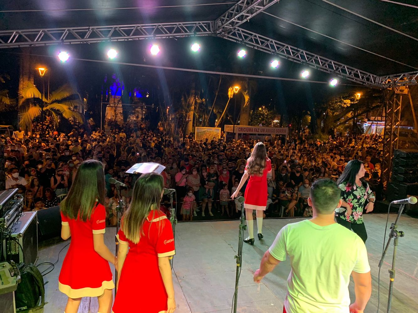 O clima natalino invadiu a Praça Nereu Ramos na noite desta quinta-feira, 04 de novembro. Após quase dois anos sofrendo com os impactos da pandemia, os criciumenses voltaram a sentir a magia deste período tão especial. Apresentações musicais, corais e a Banda do Papai Noel emocionaram as centenas de pessoas que compareceram ao centro da cidade. O momento mais aguardado, no entanto, ficou por conta do acendimento oficial das luzes do Natal 2021.
