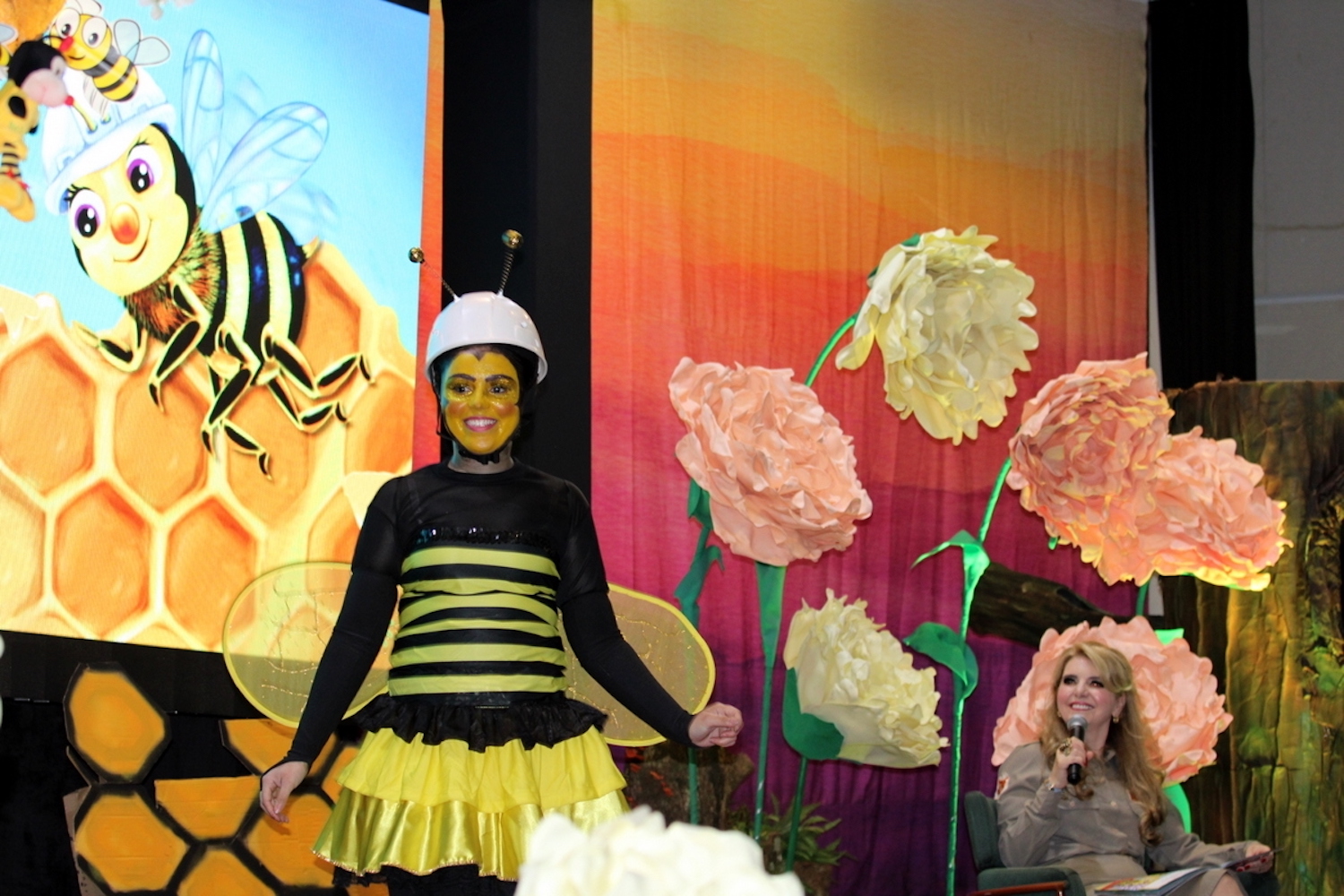 A professora Morgana fez uma contação de história que encantou e deixou os pequenos mais apaixonados pela abelha, que ultrapassou as paredes da colmeia e aterrissou no auditório, levantando muitos aplausos e curiosidades. “O livro narra a história de uma abelha da espécie conhecida popularmente por abelha-do-mel, apis melífera, e, ao longo da sua narrativa, apresenta as características de cada fase da vida que essa espécie de abelha possui, com o seu papel importante ecológico de representatividade para o equilíbrio e manutenção da vida no planeta”, contou Morgana.