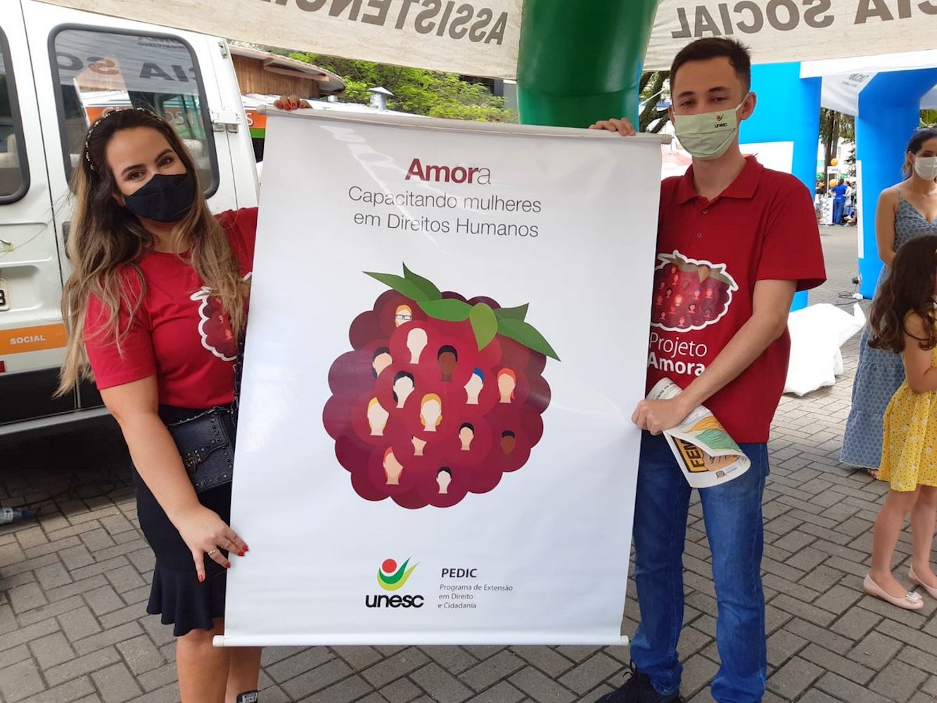 O evento foi realizado pelo Conselho Municipal dos Direitos das Mulheres, conselho que a Unesc tem assento de representação. Acadêmicos e a professora Giovana Salvaro, que compõem a equipe do projeto Amora, participaram do evento na praça.