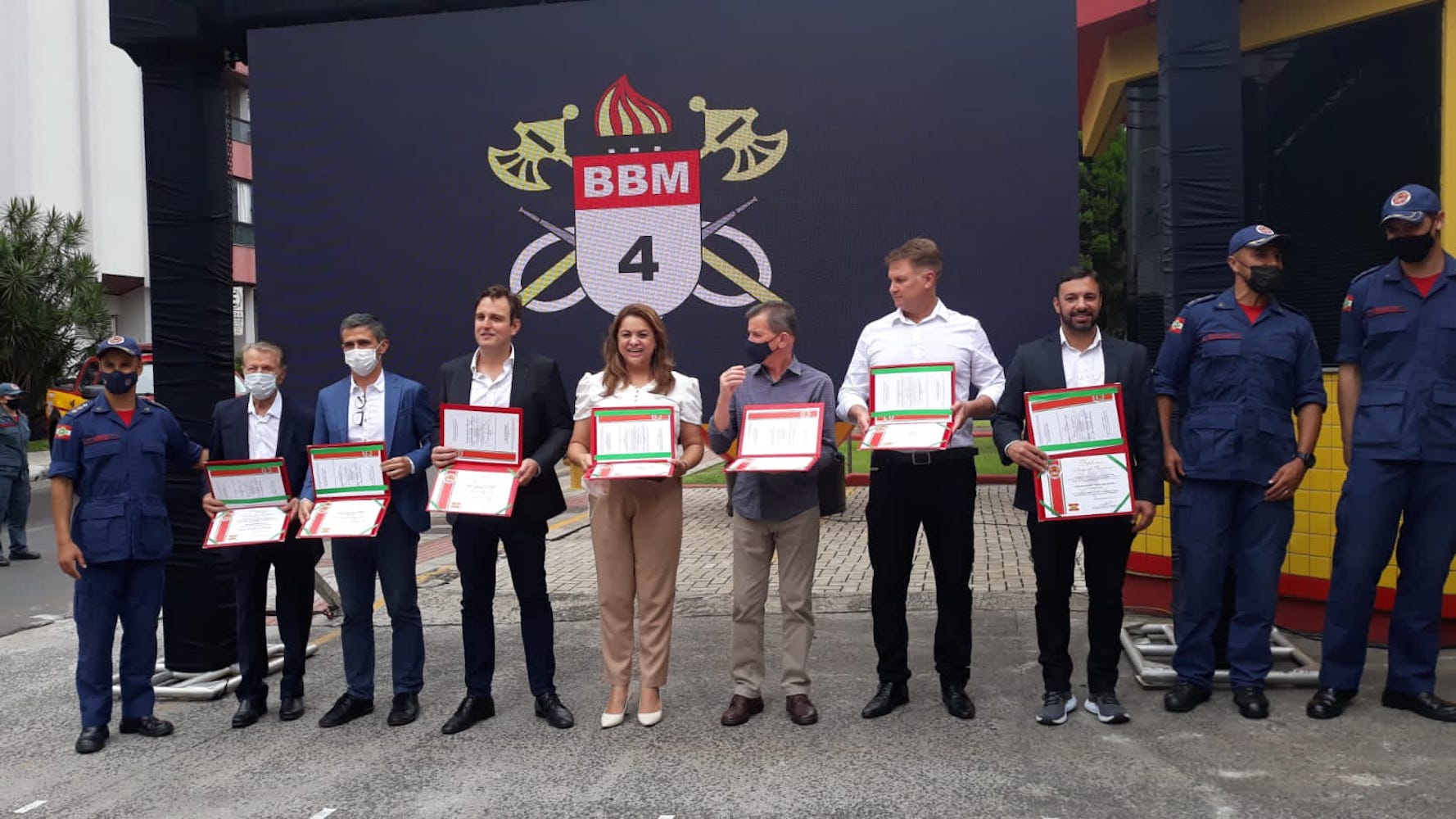 Além da entrega das honrarias e do lançamento do projeto da obra, os bombeiros apresentaram ainda a Operação Veraneio 2022 e firmaram a entrega de uma viatura para Corpo de Bombeiros de Içara. O carro no valor de R$ 236 mil foi conquistado com emenda do deputado federal Hélio Costa.