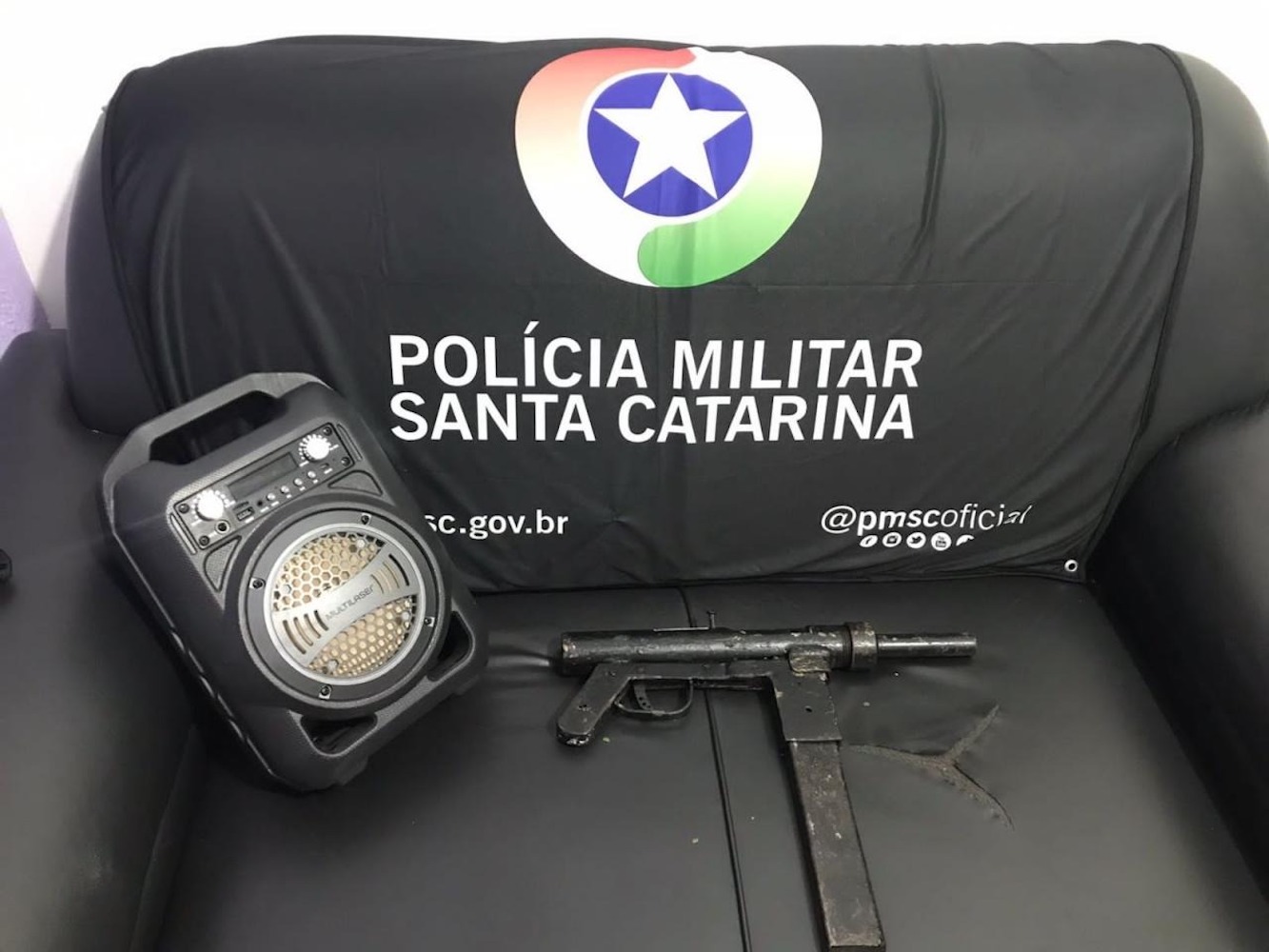 Já sobre a arma artesanal, os policiais tinham informações de que uma submetralhadora estaria em posse do suspeito. Assim, a arma foi encontrada escondida num terreno nos fundos da residência do suspeito.
