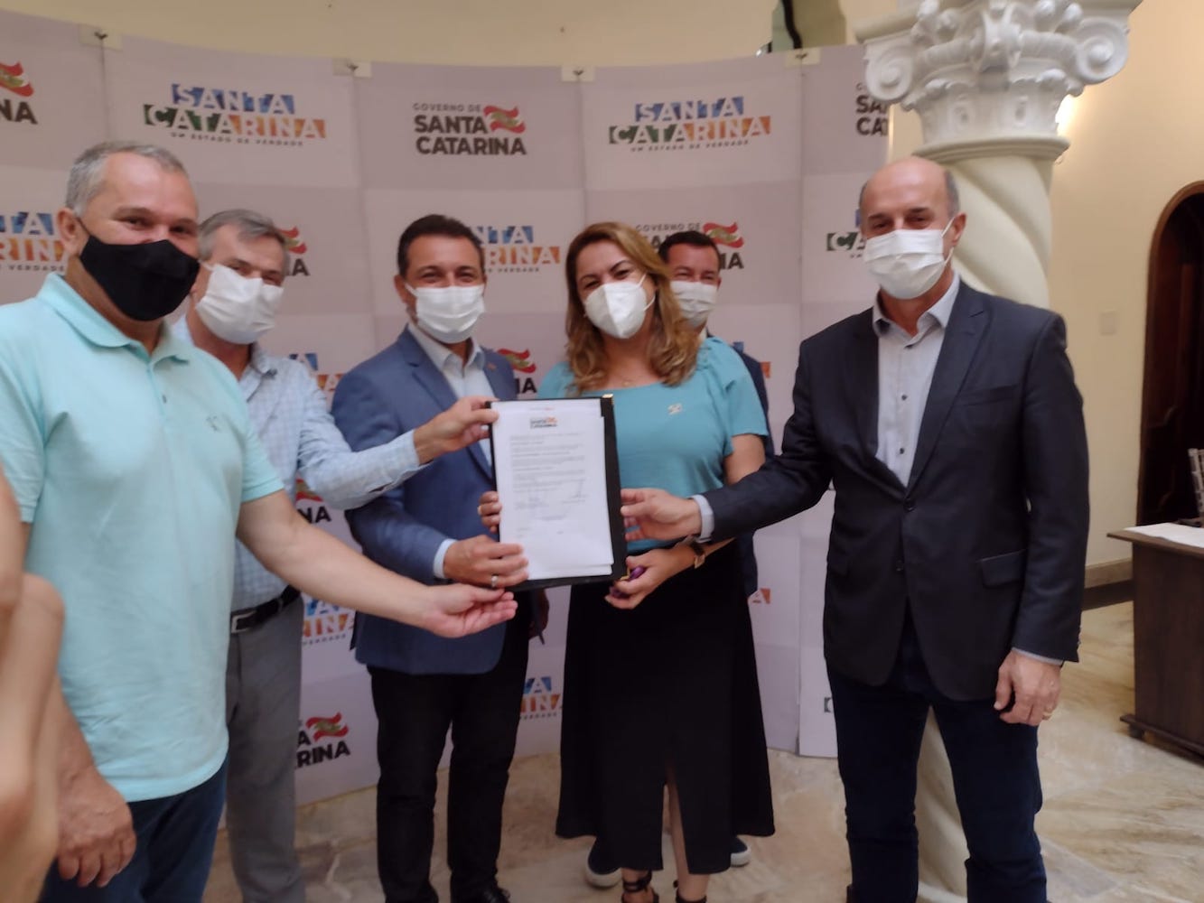 Vários outros municípios catarinenses assinaram também a adesão, para receber os recursos em até cinco parcelas anuais. Os valores deverão ser investidos em obras de infraestrutura.