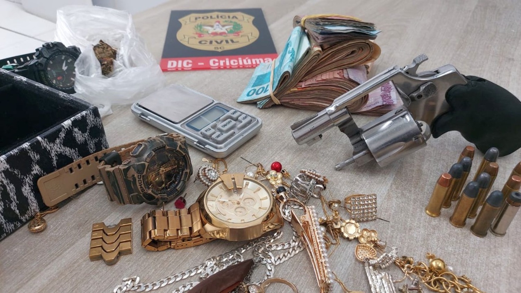 A ação, coordenada pelo delegado Yuri Miqueluzzi, os mandados foram cumpridos nos bairros Renascer e São João. Quatro pessoas são investigadas por suspeita de envolvimento em roubos armados, além de tráfico de entorpecentes. Os policiais localizaram um revólver de calibre 38 com numeração suprimida, 12 munições do mesmo calibre, uma porção de maconha, balança, acessórios para embalar o entorpecente, além de R$ 5.700,00 em dinheiro. Também foram apreendidos relógios e jóias de possível origem duvidosa.