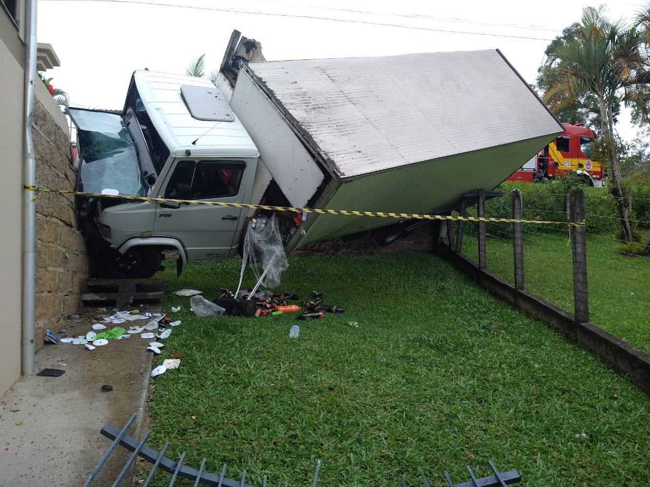 De acordo com as informações do Corpo de Bombeiros Militar, o acidente envolveu um caminhão Mercedes Benz, que colidiu e danificou a grade e a estrutura de alvenaria do imóvel. O veículo, que transportava bebidas, foi encontrado lateralizado, sem vazamento de combustível.