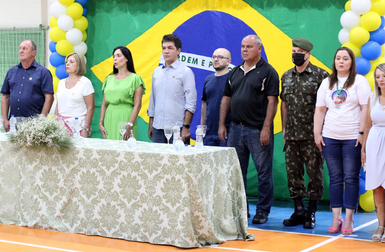 O ato cívico de cantar o Hino Nacional Brasileiro e o Hino do Município passou a ser realizado no ano passado em todas as escolas da rede e continuará durante todo o ano de 2022, sempre no período matutino. Autoridades, APP e Associação de Moradores também se fizeram presentes. “Todas as escolasrealizarão o ato durante o ano letivo, e a cada semana o prefeito municipal visitará uma das unidades escolares”, afirmou o secretário de Educação do Município, Miri Dagostim.