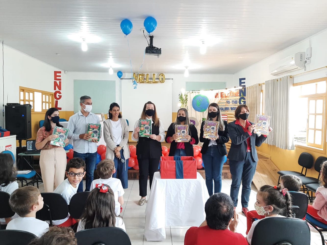 Os alunos do ensino fundamental I da escola Maria Arlete Bitencourt Lodetti, colégio da rede municipal de ensino de Içara, receberam nesta segunda-feira, dia 21, o livro “Hello”, obra de língua inglesa que será usada nas aulas comandadas pela professora Monike Medeiros da Luz Búrigo. O encontro contou ainda com uma mensagem virtual enviada pela própria autora do livro, a escritora Rita Brugin.