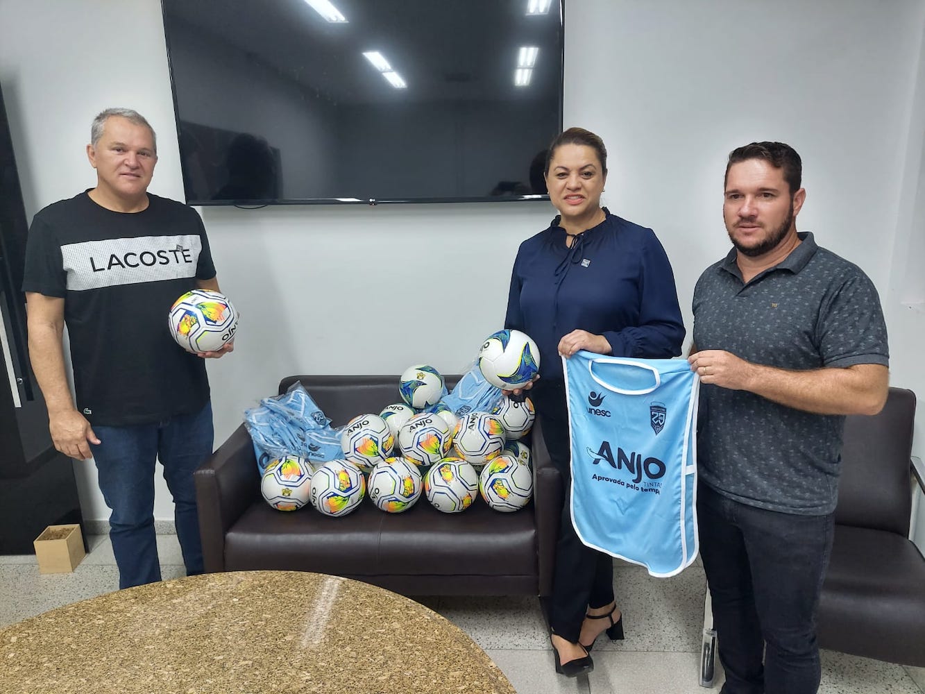 O projeto Anjos do Futsal, comandado pela Fundação Municipal de Esportes no núcleo de Içara, entregou na manhã desta quinta-feira, dia 24, bolas e coletes que vão reforçar o material de trabalho da equipe. Ao todo são mais de 50 crianças e adolescentes, de 9 a 14 anos de idade, que treinam em quatro horários diferentes no bairro Presidente Vargas.