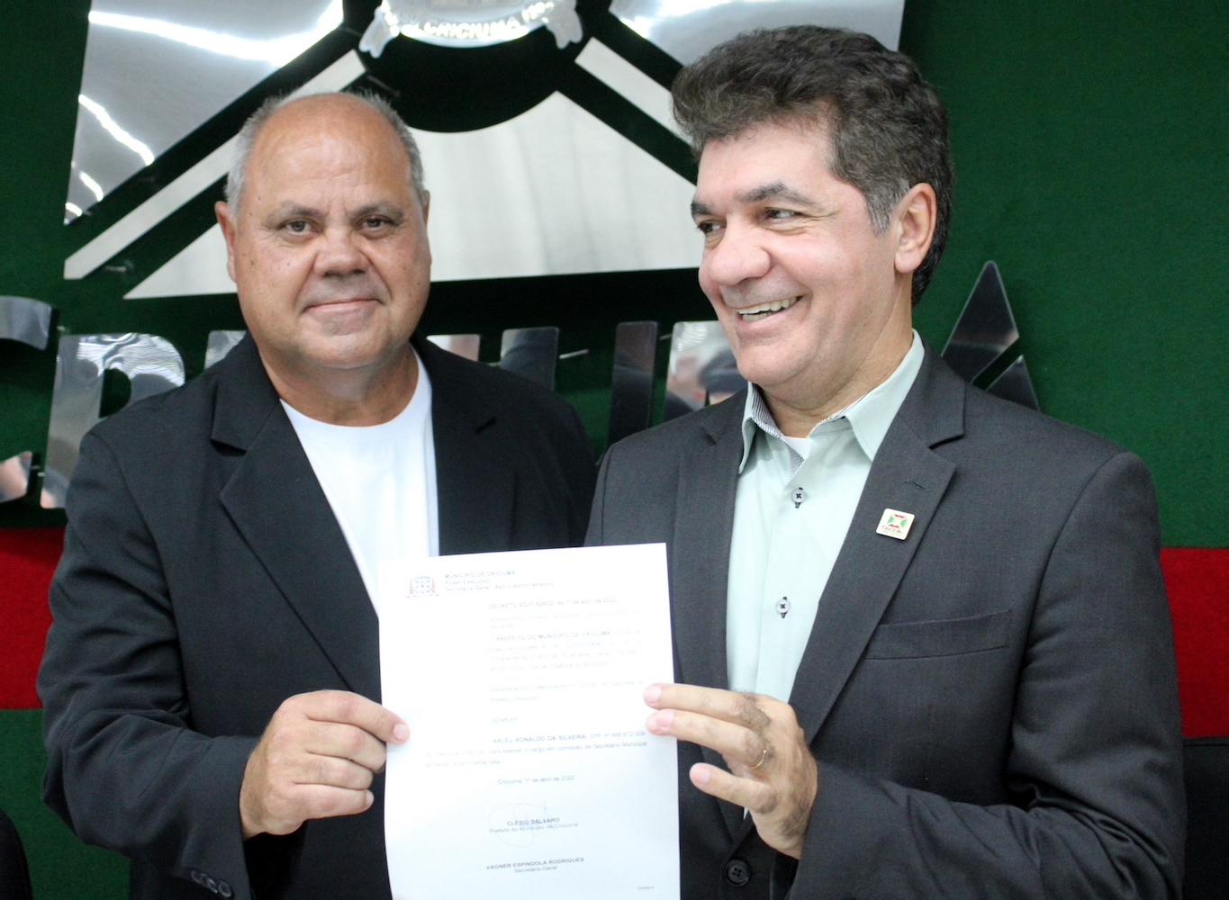 A Secretaria de Saúde de Criciúma passa a contar com um novo secretário. Arleu Ronaldo da Silveira assumiu a pasta na tarde dessa sexta-feira (1º). O decreto de nomeação foi assinado no Salão Ouro Negro, no Paço Municipal Marcos Rovaris, com a presença de autoridades, comunidade e familiares. “É um grande desafio estar à frente desta pasta que é essencial para a população e, ao mesmo tempo, assumo a continuidade de uma gestão que deu certo”, destacou o novo secretário.