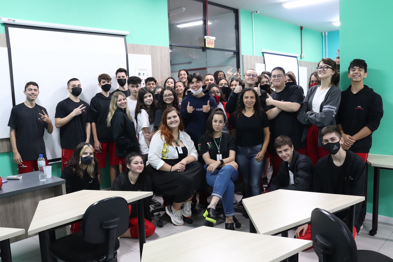O projeto interdisciplinar é comandado pela professora de Artes, Francine Nazario da Silva, de Língua Portuguesa, Vivian Cypriano e de Literatura, Marina Arnt. “Estamos em um projeto interdisciplinar com os componentes curriculares de Artes, Língua Portuguesa e Literatura que se uniram para falar sobre registros fotográficos e o diário, que eles vem trabalhando. No componente de Literatura, os alunos estão abordando a obra ‘Quarto de Despejo: Diário de Uma Favelada’, de Carolina Maria de Jesus, então eles também já estão trabalhando em uma perspectiva de diário, de registros em outros aspectos. Na Arte, já iniciaram os elementos da linguagem fotográfica e a Andressa veio falar mais sobre isso, para tentar de alguma forma abarcar este projeto interdisciplinar. Falar sobre registro, diário, redes sociais, é uma relação que está entre os nossos objetivos. Pensar a rede social como um diário. Na Língua Portuguesa eles vão trabalhar a linguagem verbal e não verbal e construir um perfil no Instagram das segundas séries com registros e elementos com análise deste perfil com diário”, relata a professora de Artes, Francine Nazario da Silva.