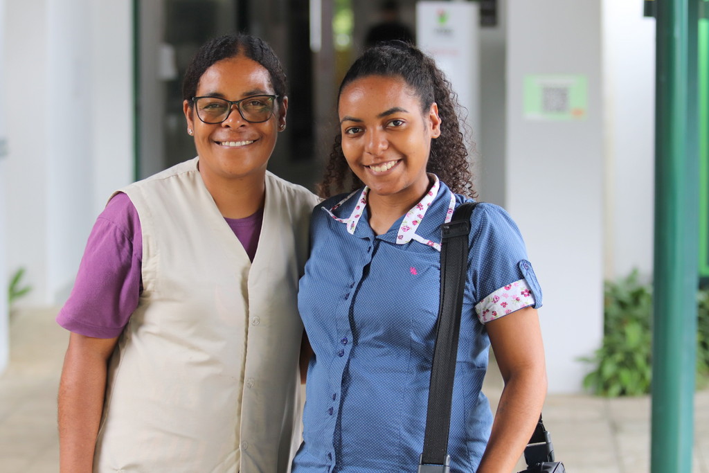 Também “criadas” com presença constante no campus e da mesma faixa etária dos “meninos” de Edenilson, João Luiz, Paulo Henrique e Marco Antônio, as “meninas” de Ana Maria, chamadas Adriane, já formada na Unesc, Ana Cláudia e Ana Caroline, gêmeas, acadêmicas dos cursos de Biomedicina e Fisioterapia na Instituição, também levam no peito o símbolo da empresa que colabora com o sustento da família e oportuniza experiências como a do estudo. “Isso é motivo de muito orgulho para mim. Graças ao meu trabalho aqui há 17 anos eu pude oportunizar o estudo para elas. Trabalho com amor porque sei o valor de tudo o que o emprego me proporciona e o que a Instituição proporciona à comunidade”, aponta, feliz ao lado de Ana Cláudia, grávida do primeiro netinho para a vó Ana.