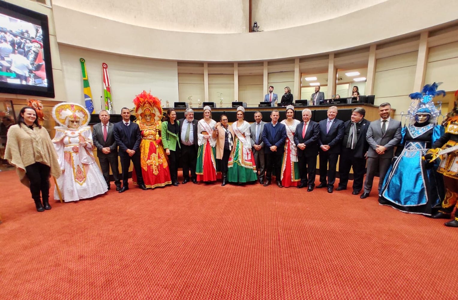 A rainha, princesas e o Prefeito de Nova Veneza, Rogério Frigo, estiveram na sessão da Assembleia Legislativa de Santa Catarina, nesta quarta-feira (1º), para divulgar a programação da Festa da Gastronomia Típica Italiana, na sessão desta tarde, por meio de requerimento da bancada dos deputados do sul do estado. As festividades ocorrem entre os dias 15 e 19 de junho.