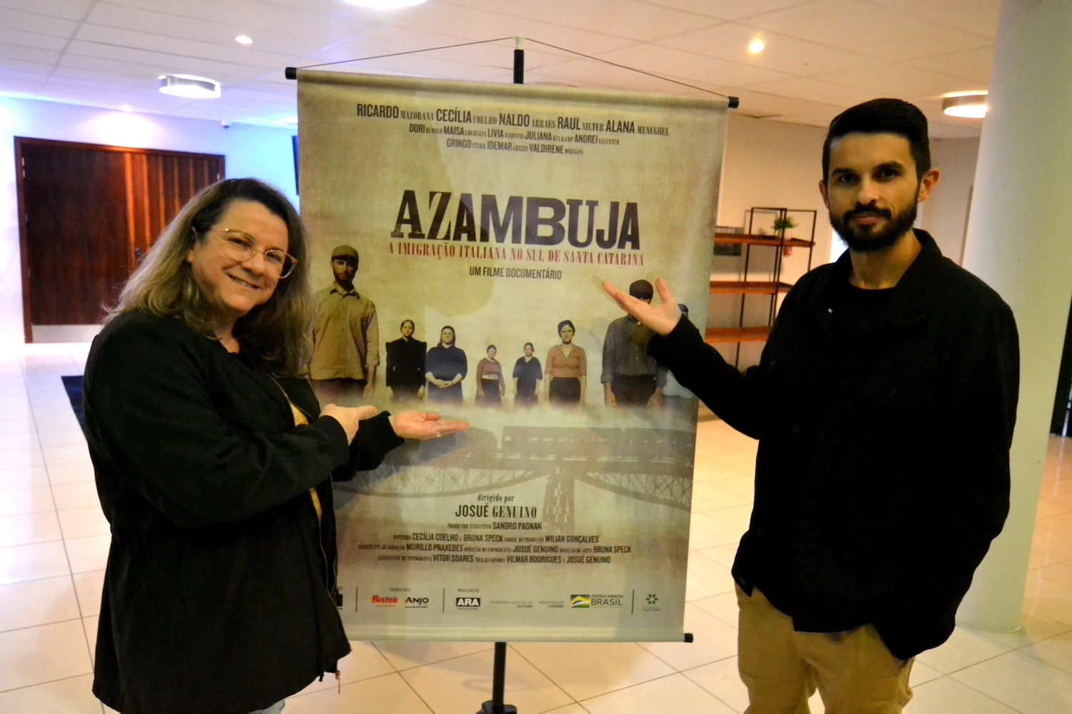 O espaço multiuso da Universidade, constantemente usado para palestras, formaturas, eventos e apresentações artísticas, se transformou em uma sala de cinema, na noite desta quinta-feira (09/06). O auditório Ruy Hulse foi o local escolhido pelos idealizadores, para ser o palco da primeira exibição em Criciúma do filme documentário “AZAMBUZA – A Imigração Italiana no Sul de Santa Catarina”.