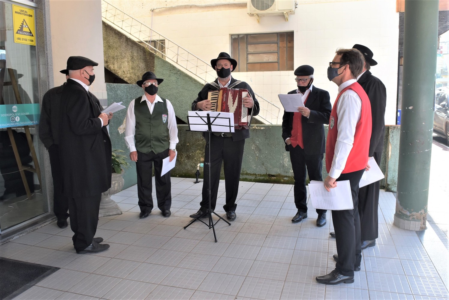 09/07 às 8h30min- Cantoria Italiana com Prefeito Franqui Salvaro e Vice-Prefeito Adriano Teixeira, acompanhando o Grupo de Cantores Bellunesi pelo comércio de Siderópolis.