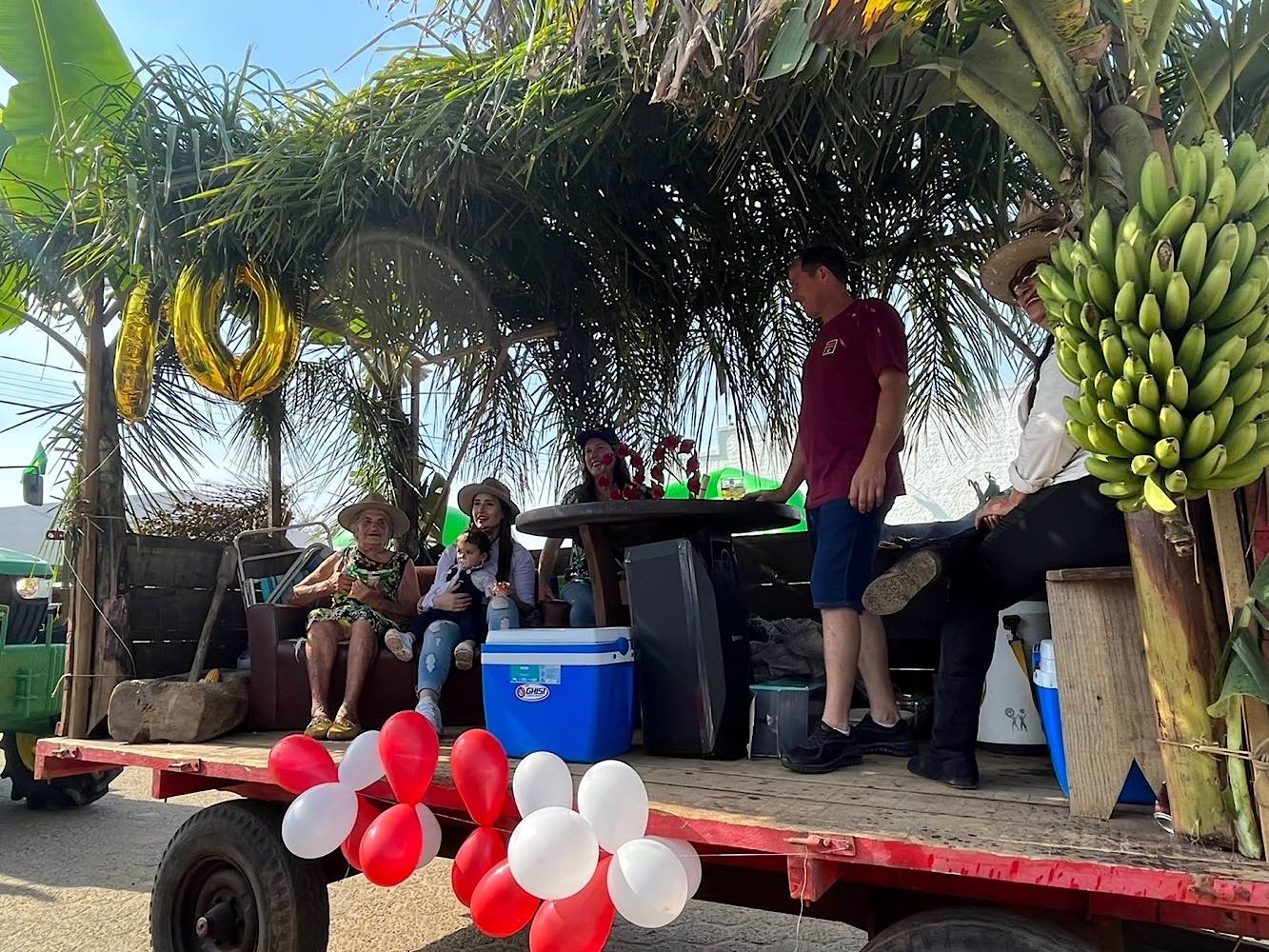 Os mais de 200 tratores e máquinas traziam tudo aquilo que é de cultivo da família. Eles traziam banana, milho, arroz, entre outras culturas. Não faltou quem viesse preparando o churrasco, o que despertava ainda mais a fome de quem assistia.