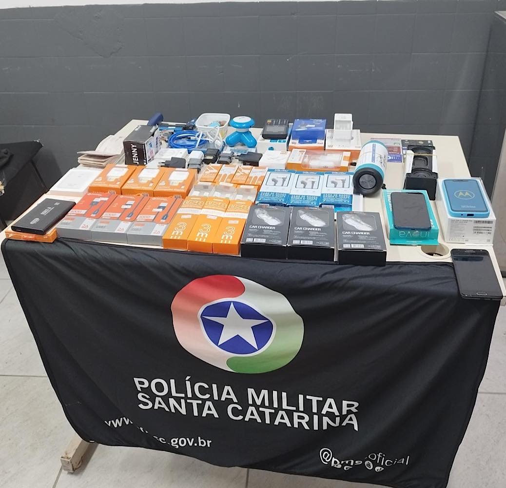 Durante as buscas nos dois ocupantes do carro, os militares encontraram diversos produtos eletrônicos que haviam sido furtados minutos antes de uma loja em Içara. Diante dos fatos, a dupla recebeu voz de prisão e foi conduzida à delegacia, junto com o veículo e os itens recuperados.