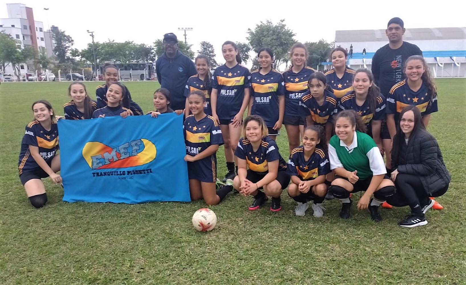 A equipe da Escola Municipal Tranquilo Pissetti é a grande campeã da competição Moleque Bom de Bola, categoria 12/14 anos, no feminino. A vitória, diante do time da unidade escolar Quintino Rizzieri, veio nos pênaltis (4×2) após o empate em 0x0 no tempo normal. Os jogos iniciaram às 8h30 e foram realizados no estádio Dêgo Rocha – Complexo Esportivo João Ramos Roussenq (Módulo).