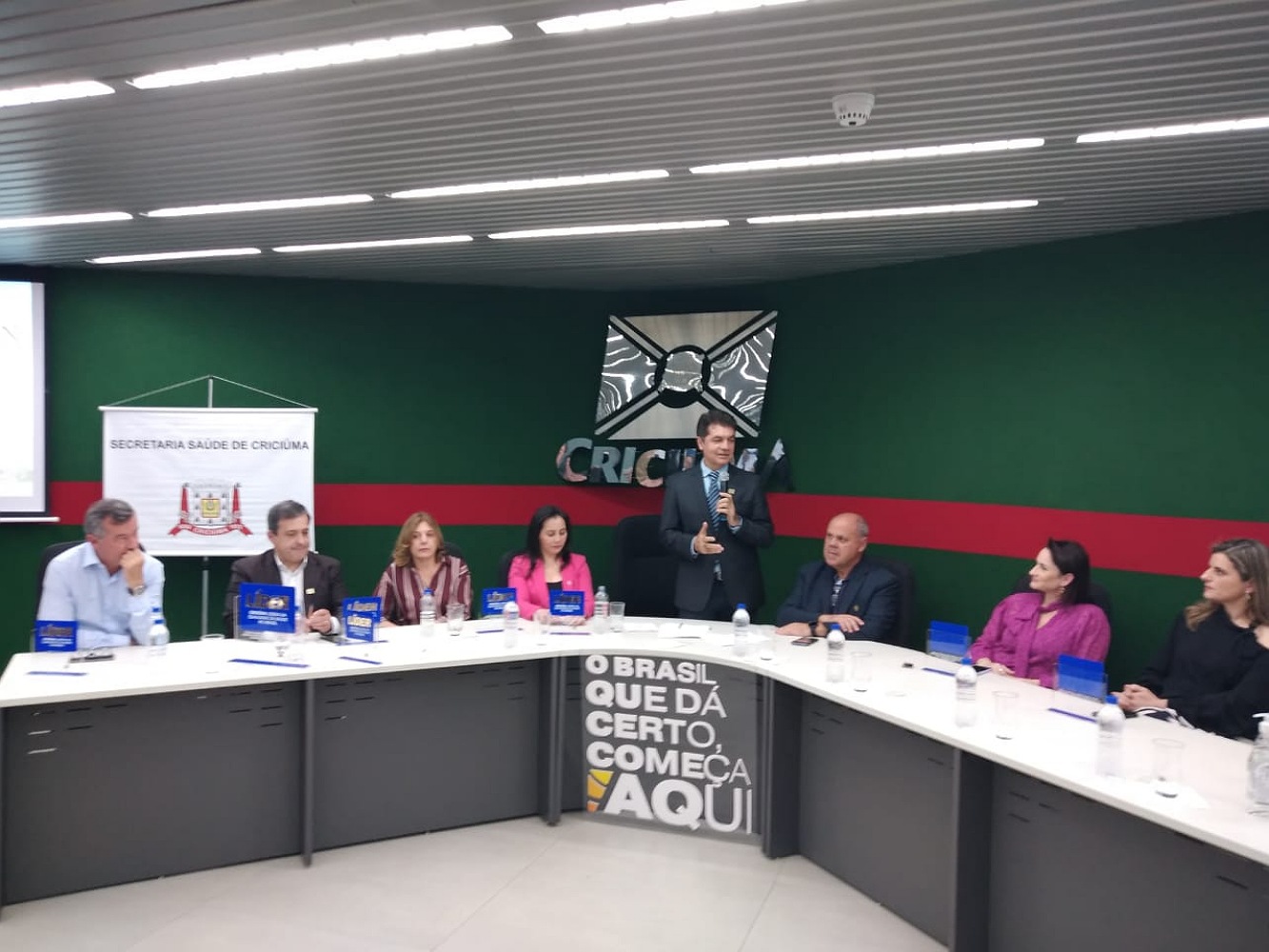 Criciúma comemorou, nesta quinta-feira (22), a liderança nacional em qualidade na saúde. O reconhecimento foi feito pelo Ranking de Competitividade e Sustentabilidade dos Municípios, divulgado na última semana pelo Centro de Liderança Pública (CLP). Para celebrar o resultado, as equipes de Saúde e entidades da cidade receberam homenagens por sua parceria junto à administração municipal. O evento ocorreu no Paço Municipal Marcos Rovaris.
