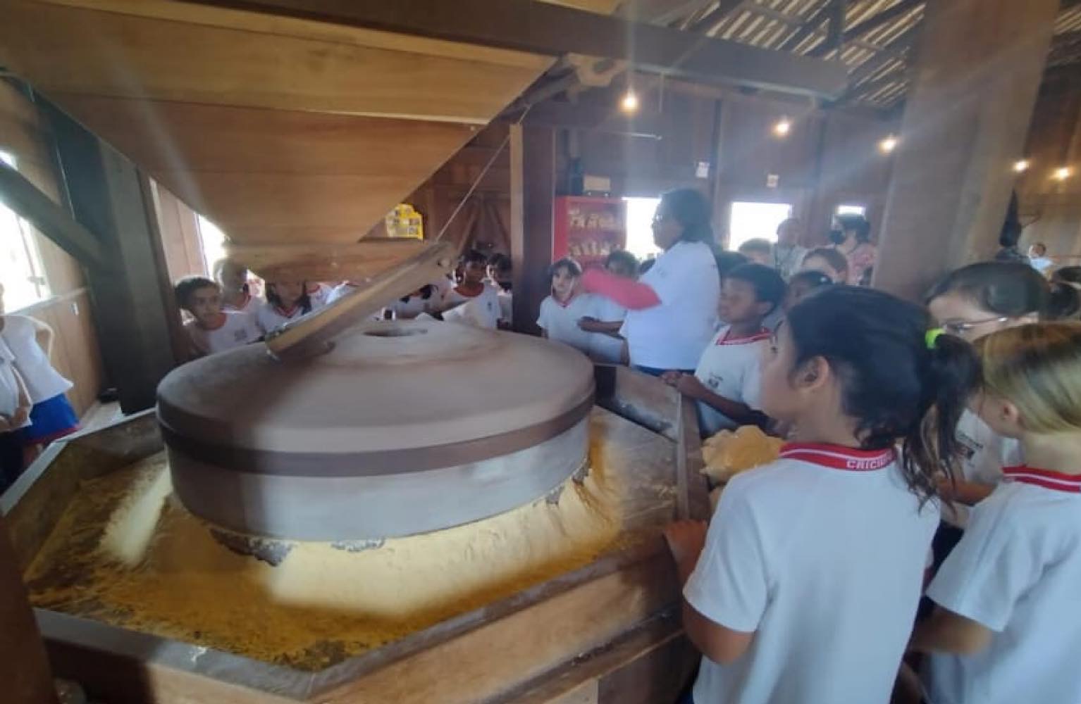 As professoras Isabel Cristina Szyndrowski e Dulcelena Pereira da Silva Vitoriano que trabalham no projeto, contam que os assuntos trabalhados durante a aula de Matemática na atafona são depois explorados com a turma, pela professora da escola que visitou o parque.