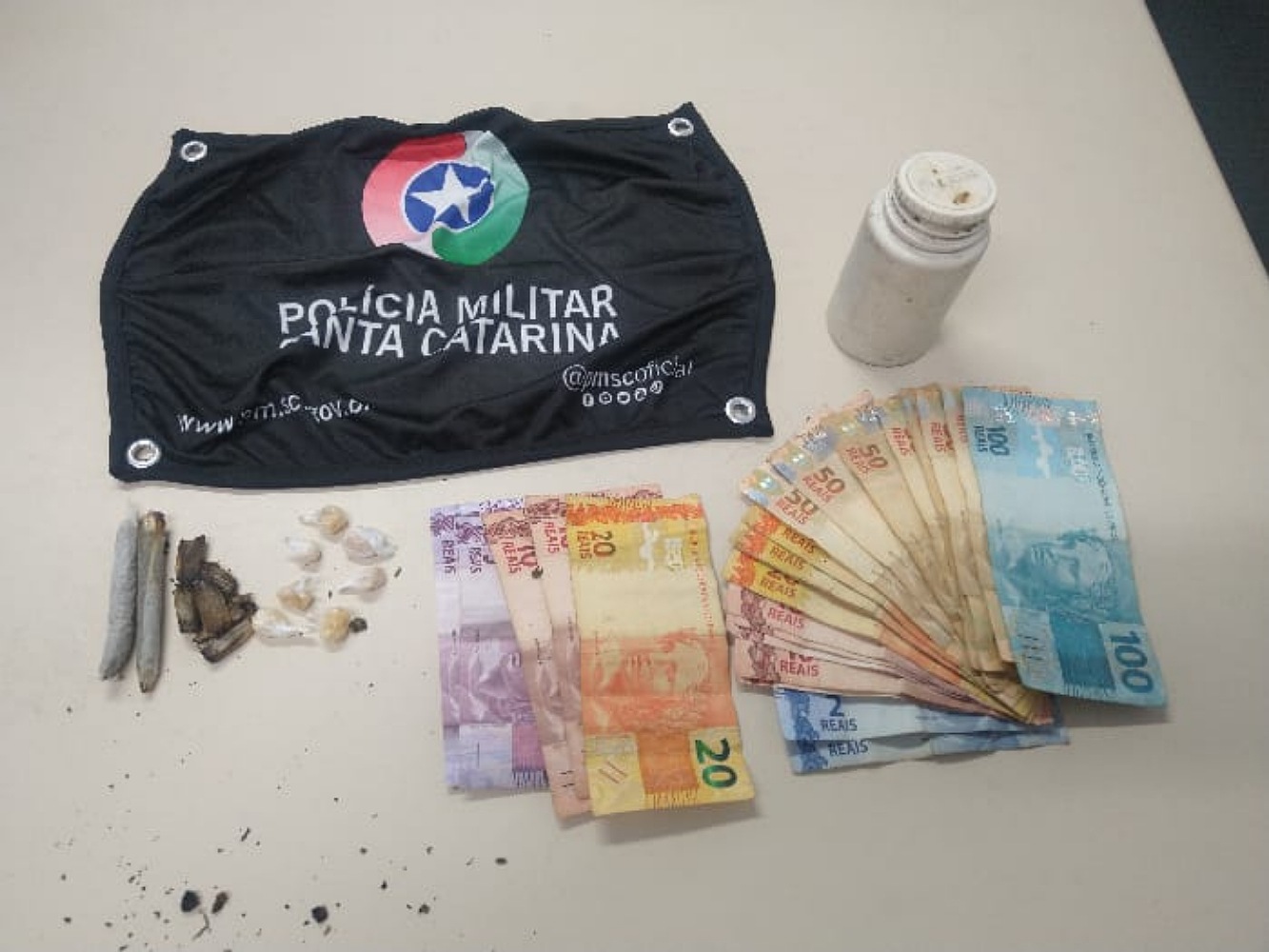 Com um dos homens, foram apreendidos sete gramas de crack, enquanto a mulher portava R$ 50,00, em notas menores e o outro homem não tinha nenhum material. Na casa havia ainda um adolescente, que informou que o crack era dele e que o homem iria vender. Além disso, no local foram apreendidos mais R$ 670,00 e dois cigarros de maconha prontos para o consumo, bem como vários restos de cigarros de maconha.