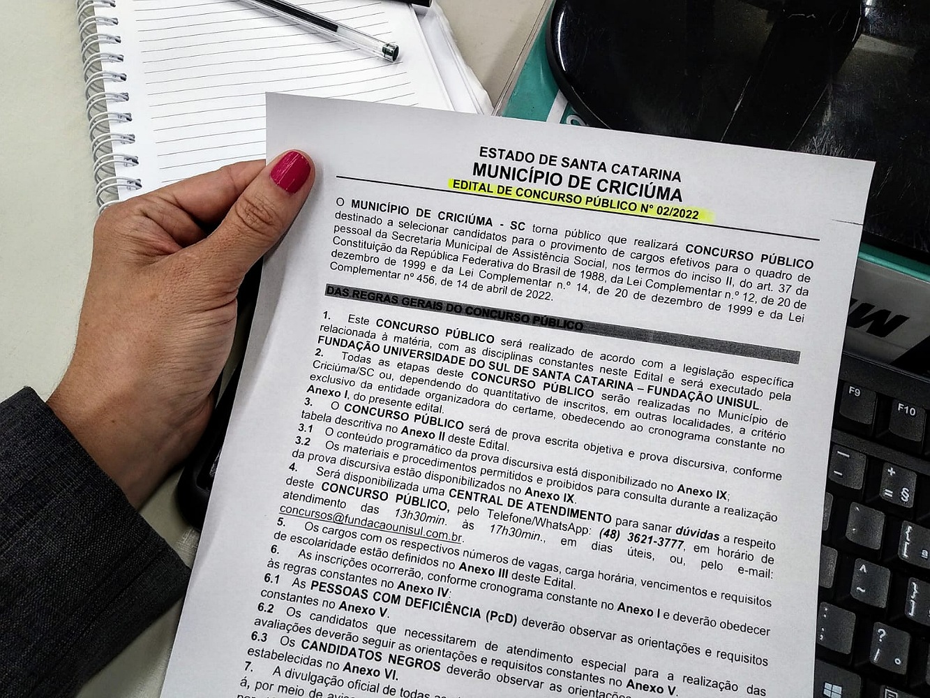 A Prefeitura de Criciúma, por meio da Secretaria Municipal de Assistência Social e Habitação, divulgou o Edital de Concurso Público nº 02/2022 para os cargos de pedagogo, educador social e advogado (Creas), nessa última terça-feira (4). O documento está disponível no Diário Oficial Eletrônico (DOE) da Administração Municipal (criciuma.sc.gov.br/site).