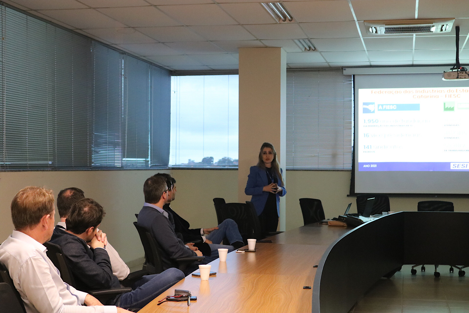 Ações, projetos e programas desenvolvidos pela Federação das Indústrias do Estado de Santa Catarina – Fiesc – foram apresentadas à diretoria da Associação Empresarial de Criciúma pela gerente executiva do Sesi/SC, Senai/SC, Instituto Euvaldo Lodi (IEL/SC) Regional Sul e Litoral Sul, Graziela da Silva Branco, também diretora da Acic.