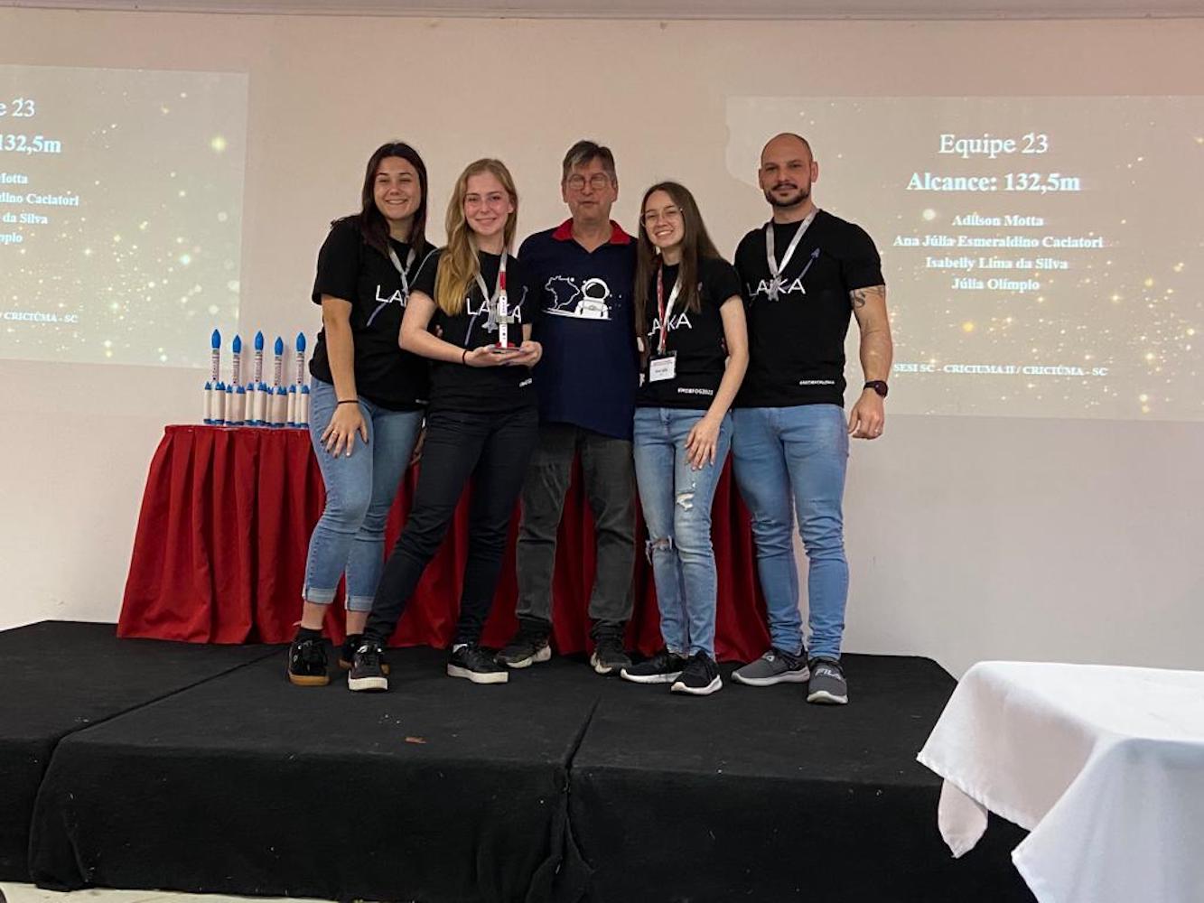 Os alunos da Escola S de Criciúma garantiram uma importante colocação na etapa nacional da Mostra Brasileira de Foguetes (MOBFOG), finalizada nesta quinta-feira, dia 20, no Rio de Janeiro. A equipe de Criciúma composta pelo professor Adilson Motta e alunas Ana Júlia Esmeraldino Caciatori, Isabelly Lima da Silva e Júlia Olímpio, garantiram a medalha de prata da competição.
