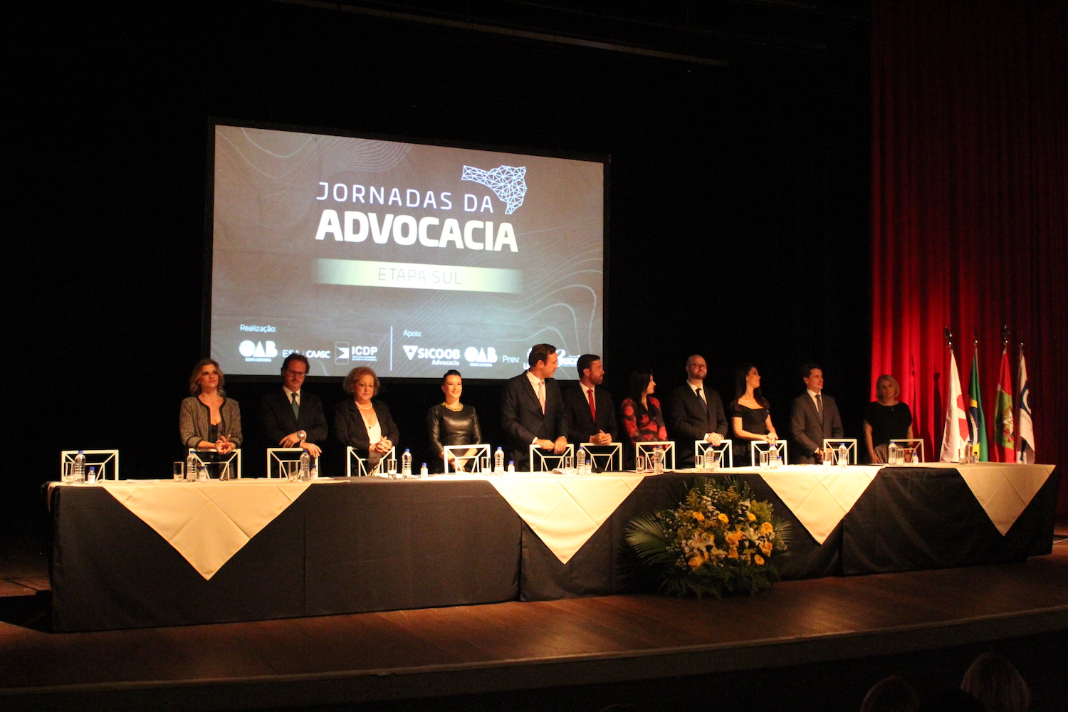 A primeira noite de programação reuniu nomes como o presidente da OAB Nacional Beto Simonetti, o vice-presidente da OAB Nacional Rafael Assis Horn, a presidente da OAB Santa Catarina Cláudia Prudêncio, a desembargadora Salete Sommariva e as Dras. Fernanda Sell, Cristiane Damasceno e Isabela Pinheiro Medeiros.