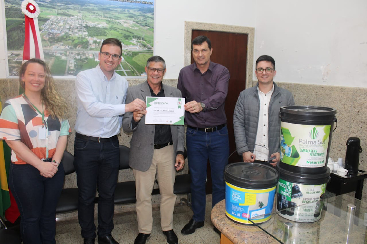 A Palma Sul Embalagens é a primeira empresa de Morro da Fumaça a receber o Selo Verde. O proprietário Antônio Augusto de Assis Batista esteve nesta segunda-feira, 31, no Paço Municipal, para receber o certificado. “A nossa ideia é aproveitar esse selo para o marketing, podendo até divulgá-lo na nota fiscal. Queremos que o nosso cliente saiba que estamos comprometidos com a parte sustentável, alavancar parcerias e incrementar as vendas”, destaca.