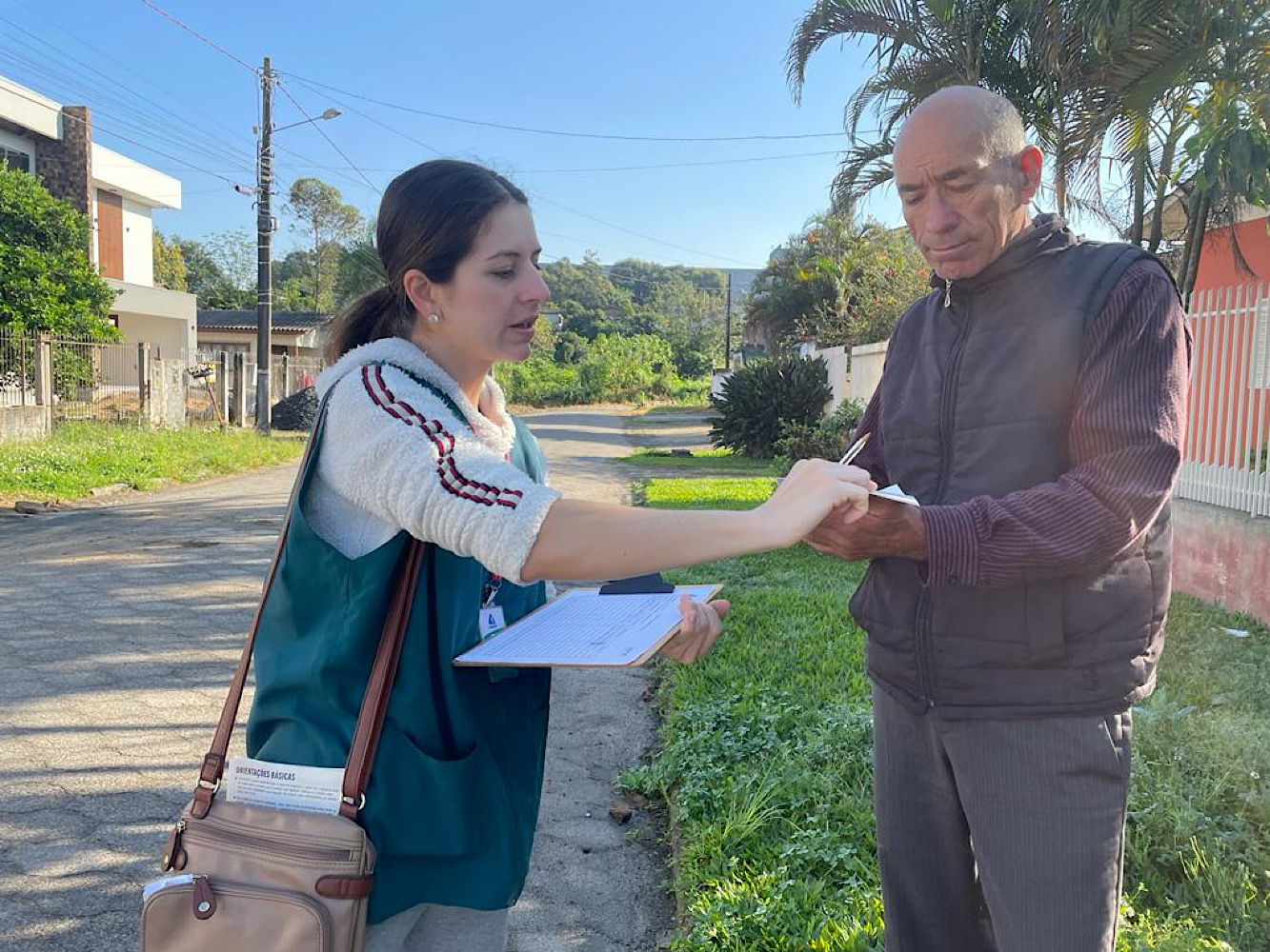 Com visita de casa em casa, os moradores recebem orientações sobre a infraestrutura de saneamento, as tarifas e como executar a ligação domiciliar ao sistema de esgoto.
