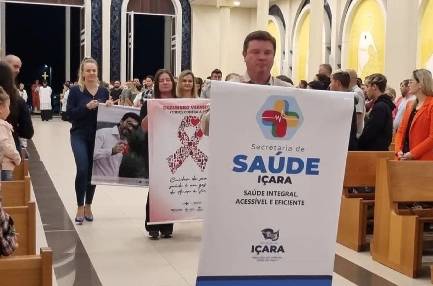 As ações alusivas ao dezembro Vermelho iniciaram na noite desta quarta-feira (30/11) com missa no Santuário Sagrado Coração Misericordioso de Jesus. Atualmente, Içara tem 414 pacientes em tratamento no SAE e somente neste ano, até o mês de outubro, já foram feitos 2.742 testes. Destes, 12 positivaram.