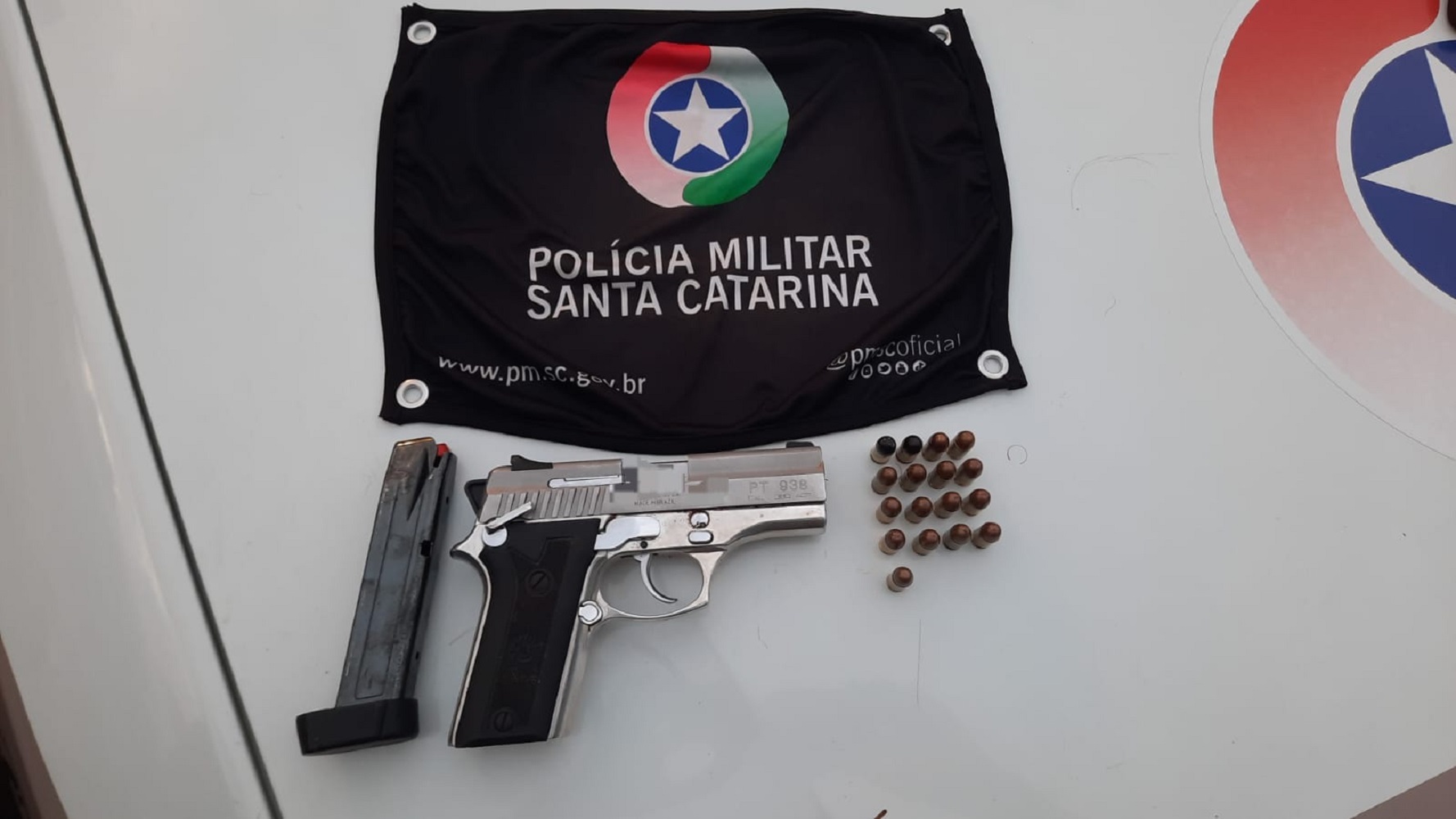 A Polícia Militar apreendeu uma arma de fogo e munições, por volta das 4h25 desse sábado (17), na rodovia Antônio Darós, no bairro Primeira Linha, em Criciúma.