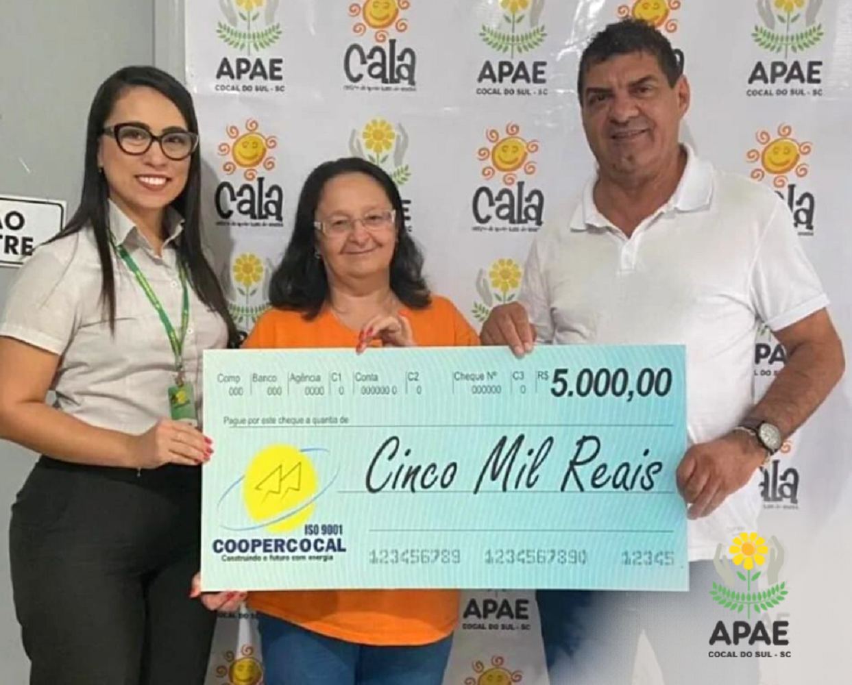 A APAE de Cocal do Sul, recebeu nesta terça-feira (21), a visita do presidente da Cooperativa Energética Cocal (Coopercocal), Altair Lorival de Melo, o Belha. Na ocasião, ele realizou a entrega de um cheque simbólico representando o repasse de R$ 5 mil em nome da Cooperativa.