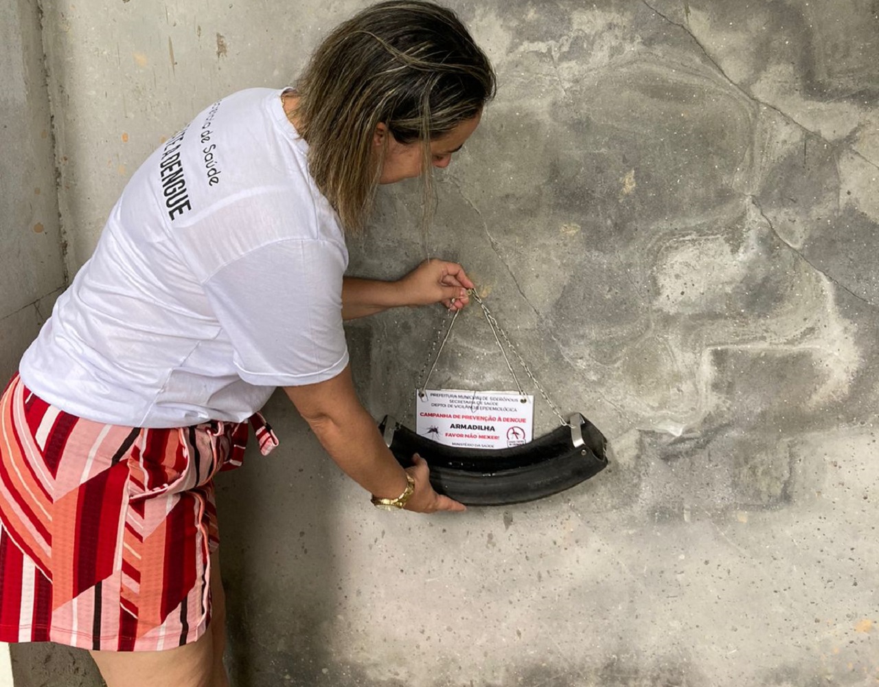 Além das armadilhas, semanalmente são feitas coletas em pontos estratégicos que possuem água parada, sendo mais uma forma de monitoramento.
