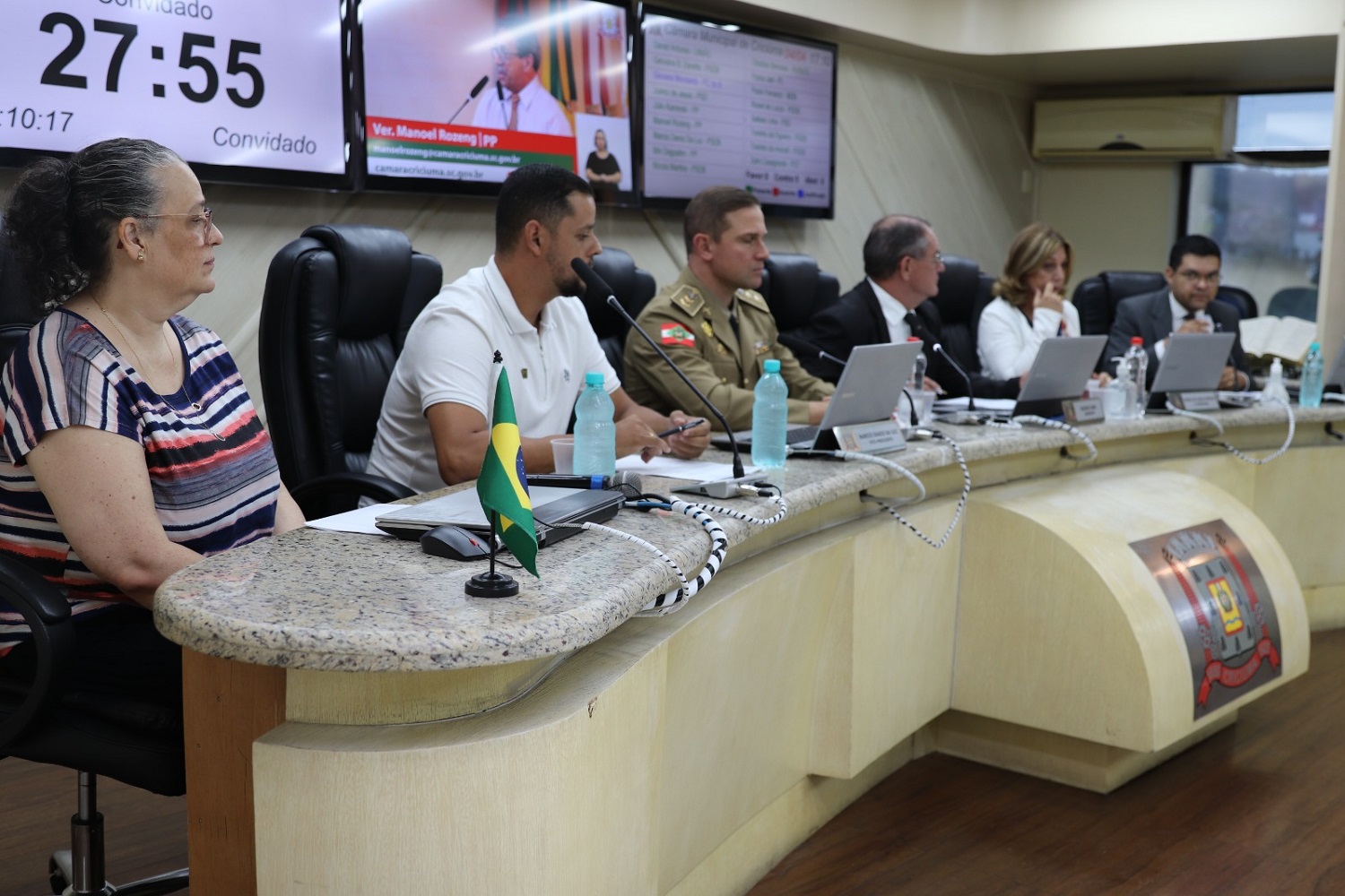 A pedido do vereador Manoel Rozeng (PP), a Tribuna Livre desta terça-feira (4) foi ocupada pelo secretário de Assistência Social, Bruno Ferreira, pela técnica da secretaria, Leila Cristina Ferrari, e pelo comandante do 9ª Batalhão da Polícia Militar, tenente-coronel Mário Luiz Silva. Eles falaram sobre a campanha “Não dê esmolas” e o quanto o ato pode interferir na segurança pública do município.