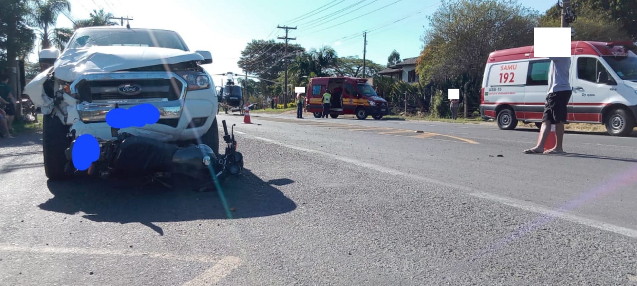 Uma jovem de 20 anos precisou ser resgatada de helicóptero após um acidente de trânsito. A ocorrência foi registrada por volta das 13h30 desse sábado (10), em Içara.