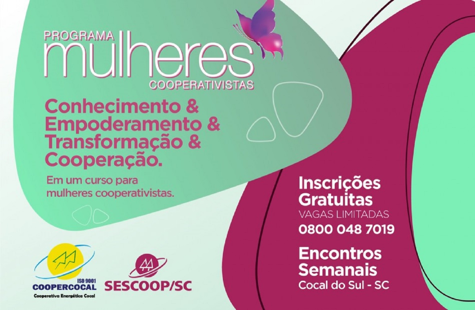 Vem aí mais um grande projeto que promete movimentar o núcleo feminino da Cooperativa Energética Cocal – Coopercocal. Com objetivo de despertar na mulher sua importância e contribuição no meio cooperativista a Coopercocal com o apoio do Serviço Nacional de Aprendizagem – Sescoop lança o programa Mulheres Cooperativistas.