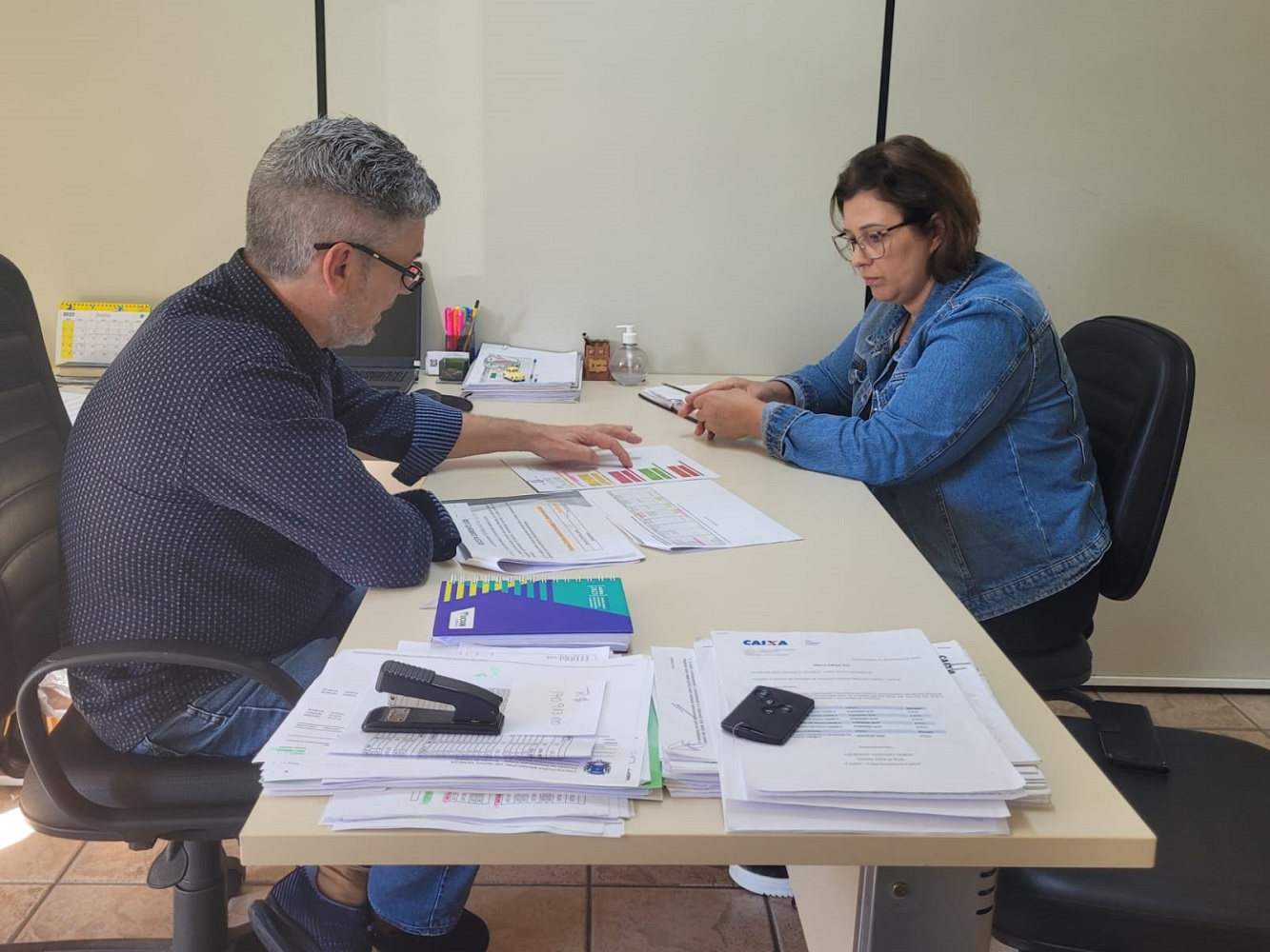 A presidente da Câmara de Vereadores de Nova Veneza, Bete Bortolotto, e o secretário de finanças, Osnir Ghellere, se reuniram nesta segunda-feira, 26, para discutir o aumento dos servidores públicos do município. O principal foco da conversa foi o repasse salarial dos professores, que está defasado há alguns anos. O vice-prefeito Elzio Milanez também participou da reunião que teve como objetivo buscar estratégias para a implementação desse aumento.