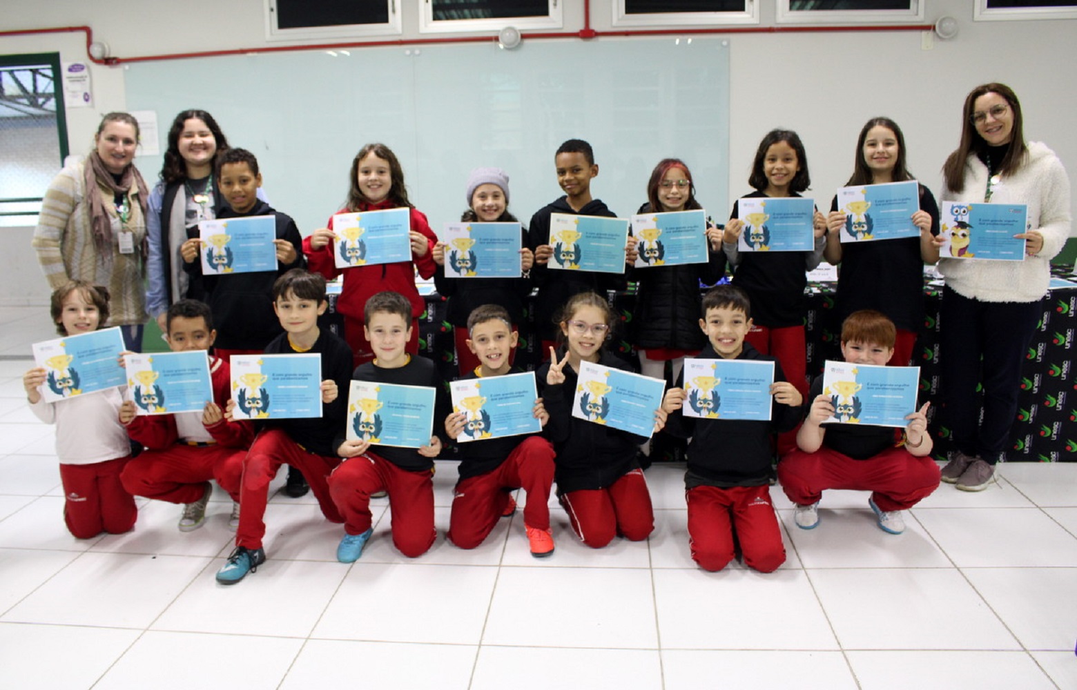 Mais de 180 alunos do primeiro ao quinto ano do Colégio Unesc receberam, na tarde desta quinta-feira (13/07), certificados de participação na Olimpíada Educacross.