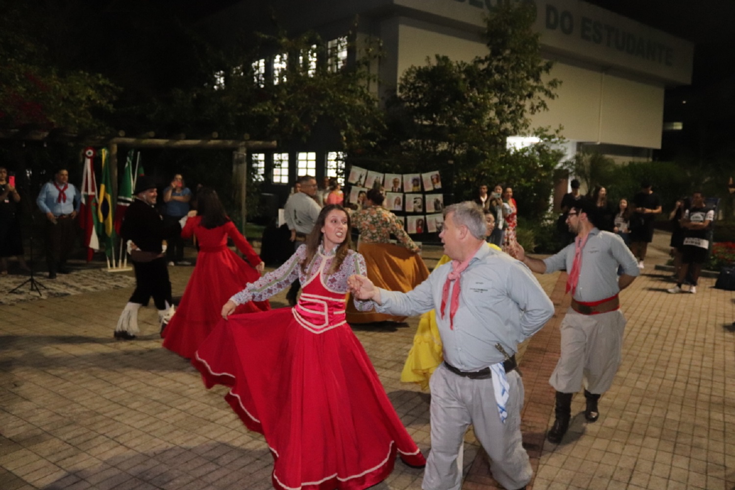 Nesta quarta-feira, além da distribuição de erva-mate Tertúlia no Espaço do Quintas Culturais, houve ainda apresentações artísticas, como o tradicionalista do grupo de dança Amigos da Vaneira de Criciúma; a Invernada Artística Alma Pampeana de Araranguá; a apresentação tradicionalista da Invernada Artística Anita Garibaldi de Turvo, e o aluno do Colégio Unesc Raysson Donisete da Silva, que também abrilhantou a noite ao tocar gaita.