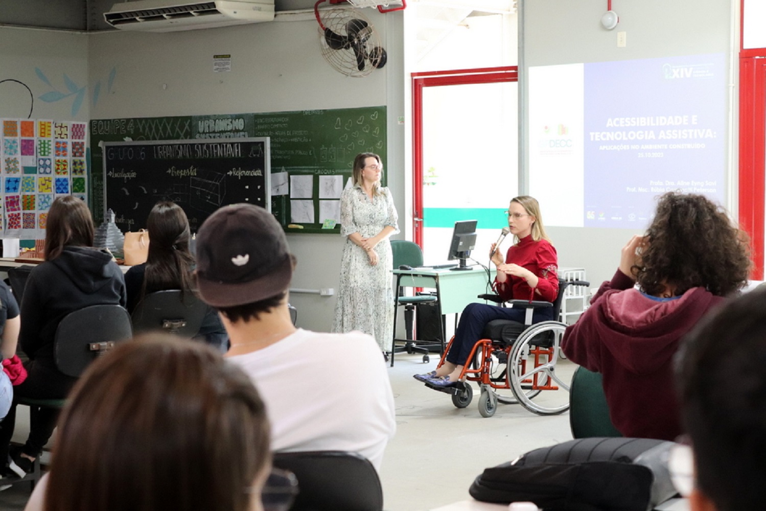 O evento, que ocorreu no espaço do Ateliê de Projetos do curso, foi uma das atividades integrantes da 14ª Semana de Ciência e Tecnologia da Unesc que segue até sexta-feira (27/10) no campus. Durante a apresentação, as professoras abordaram a importância das inovações tecnológicas atenderem às necessidades daqueles que enfrentam desafios no dia a dia, com um foco especial nas pessoas com deficiência ou mobilidade reduzida.