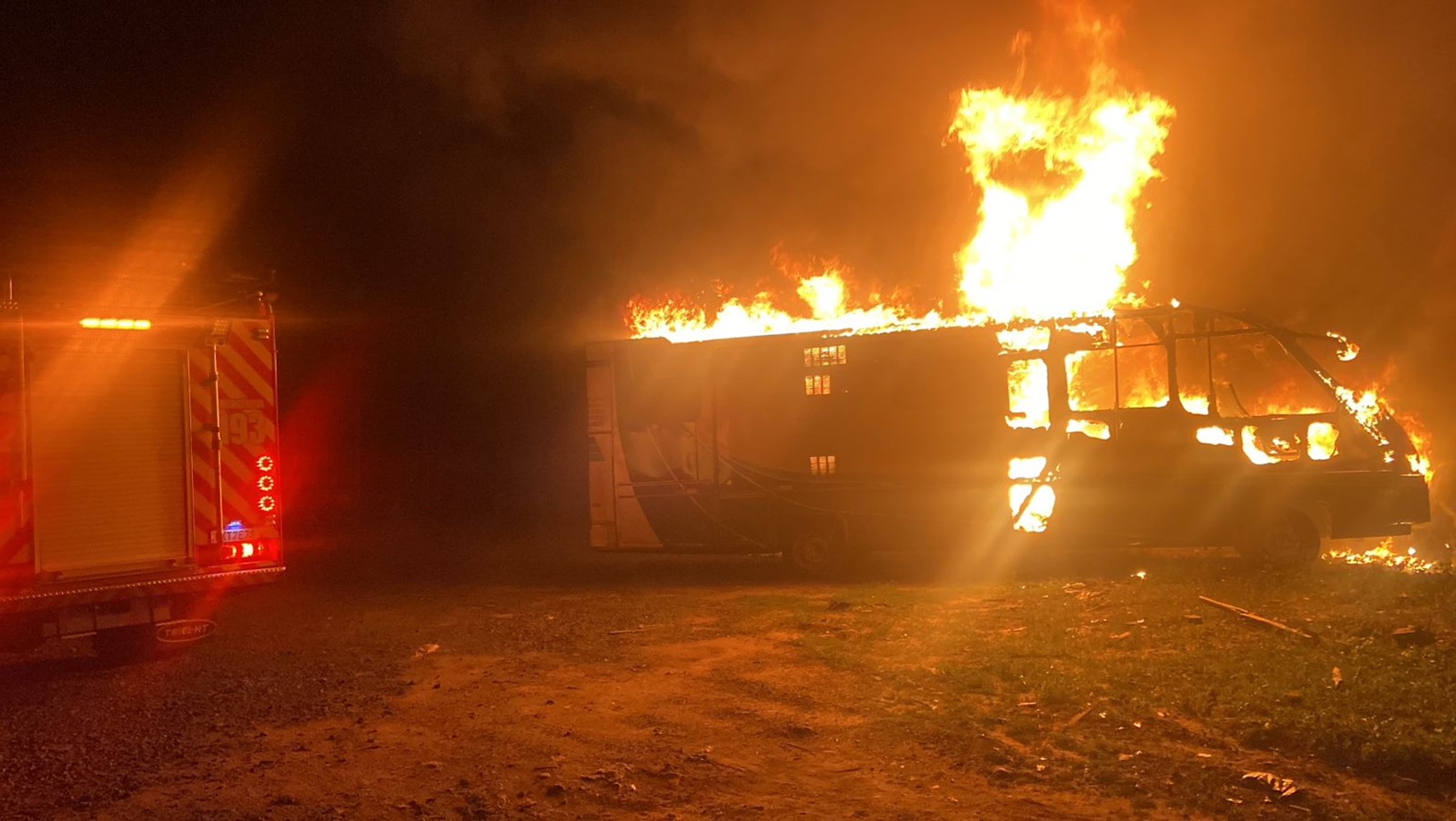 Um veículo do tipo motorhome foi completamente destruído por um incêndio, no final da noite dessa sexta-feira (27). A ocorrência foi registrada no bairro Lagoa de Fora, em Balneário Gaivota.